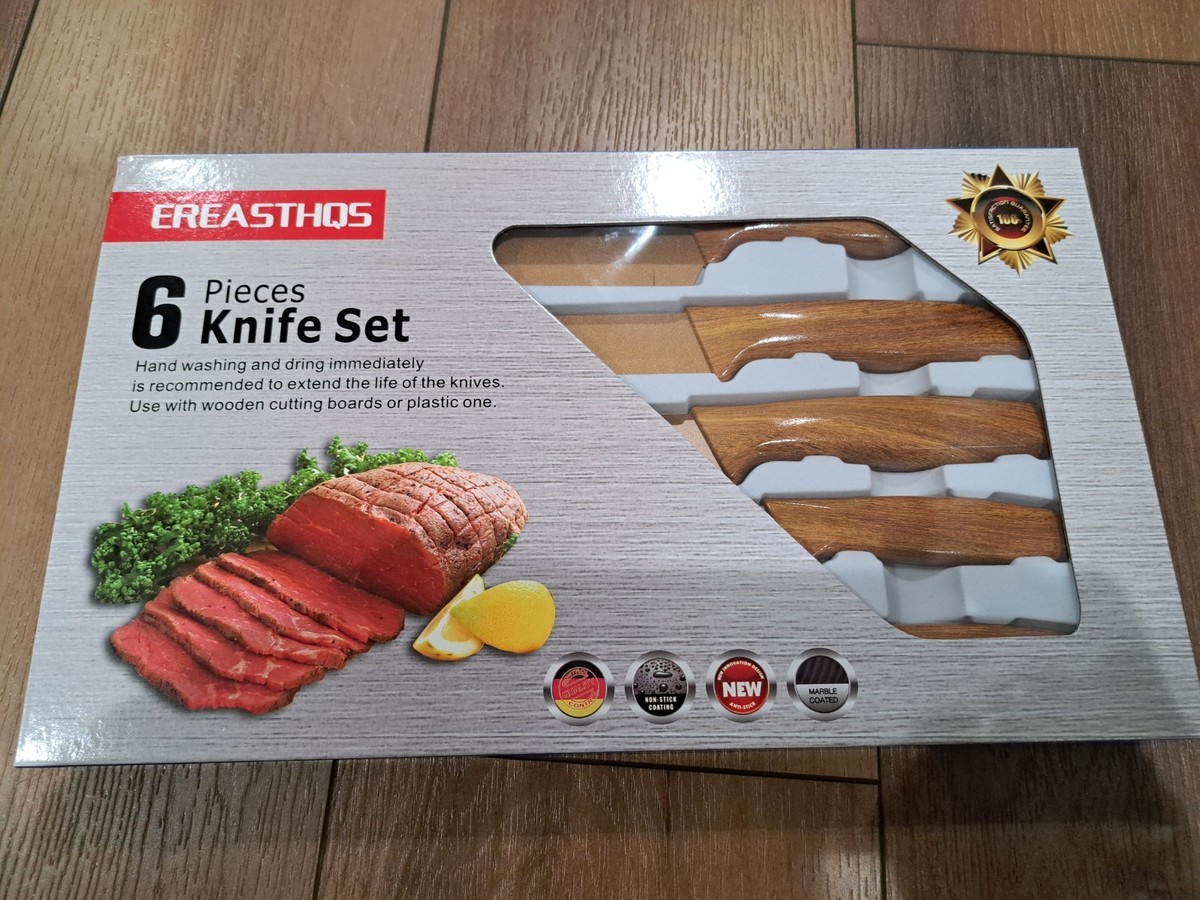 - EREASTHQS 6 Pc Kitchen Knife Set Non-Stick Marble Coated Stainless Steel Blade