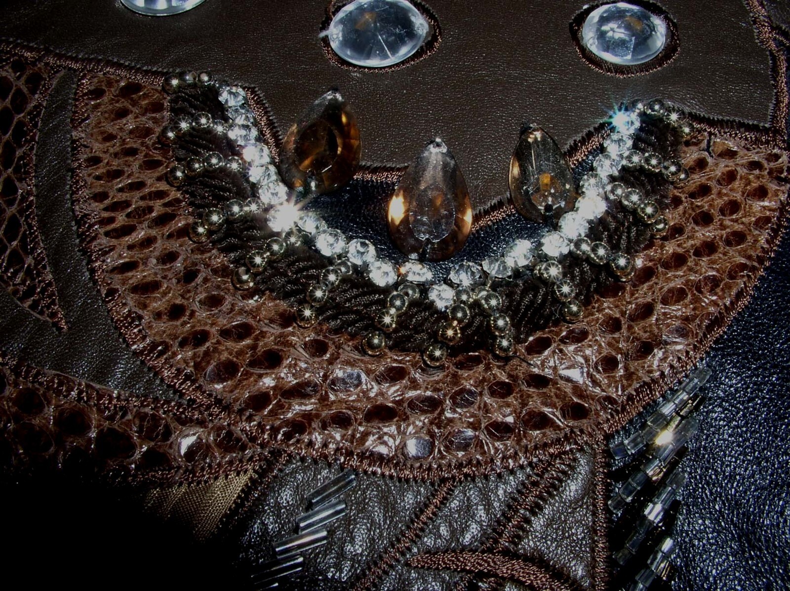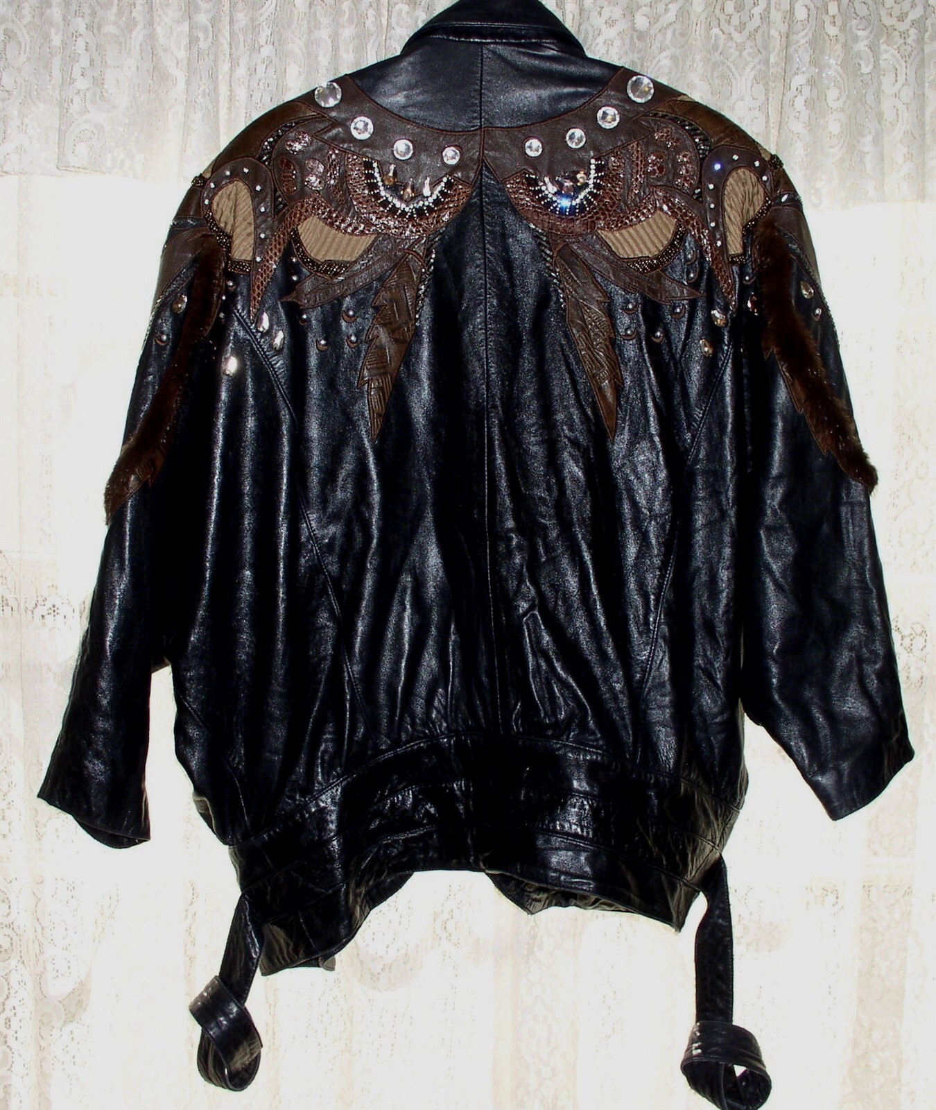 - EREZ Leather Jacket Coat Beaded Jeweled Vintage Casual Halloween Bat Winged