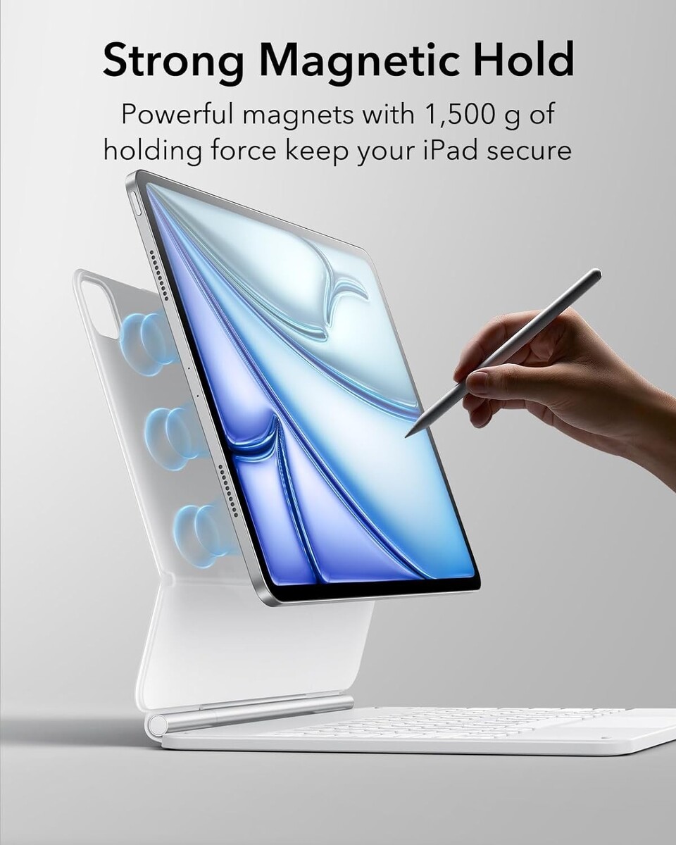 - ESR iPad Air 13 Inch Case Keyboard (M3/M2, 2025/2024) & iPad Pro 12.9 inch White