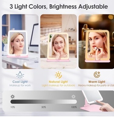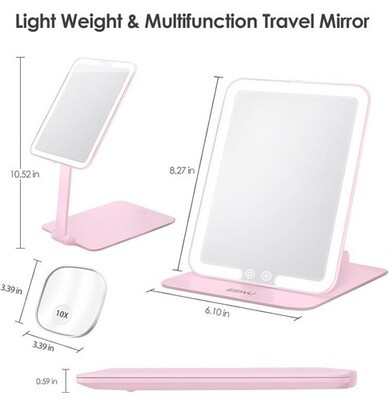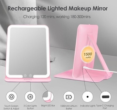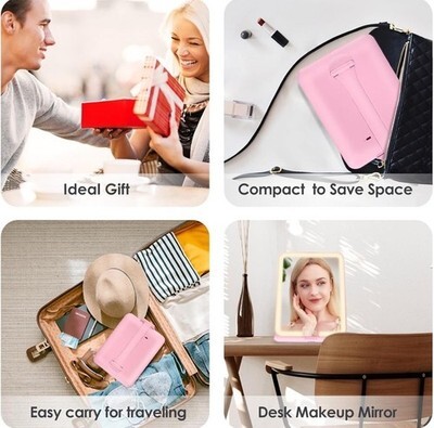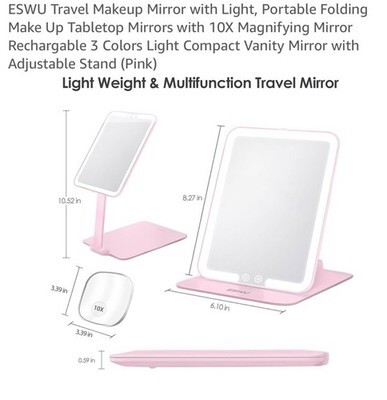 - ESWU Travel Makeup Mirror with Light, Portable Folding Make Up Tabletop Mirrors
