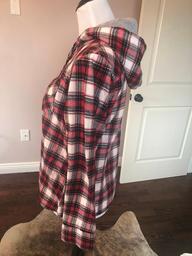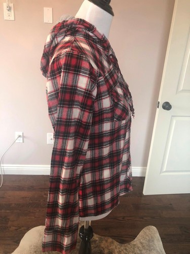 - EUC DELIA's Flannel Plaid Snap Front 100% Cotton Hoodie SZ XL Juniors Teens