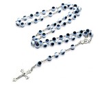 - EVIL EYE ROSARY 30" Necklace 6" Drop 8mm Blue White Prayer Beads Cross Crucifix