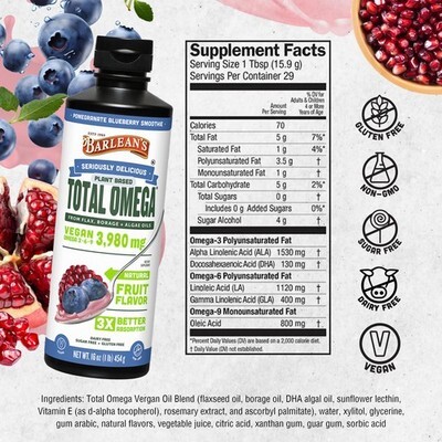 - EXP 11/11/2025 Barlean's Liquid Flaxseed, Pomegranate Blueberry Flavor, 16 oz