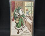 Early 1900s Green Suit Coat Santa Claus Christmas Embossed Postcard. Condition is Used. Shipped with USPS Ground Advantage.