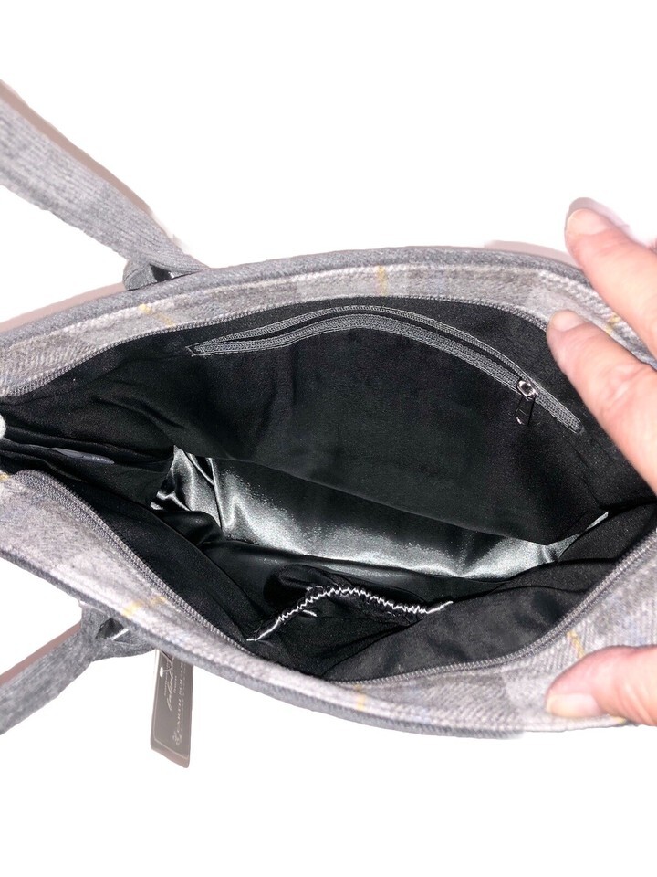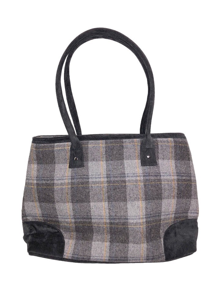 - Earth Squared Wool Shoulder Tote Bag Purse Grey Mustard Plaid Tartan Corduroy