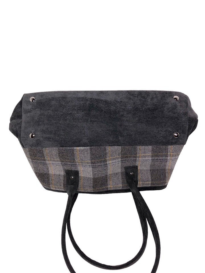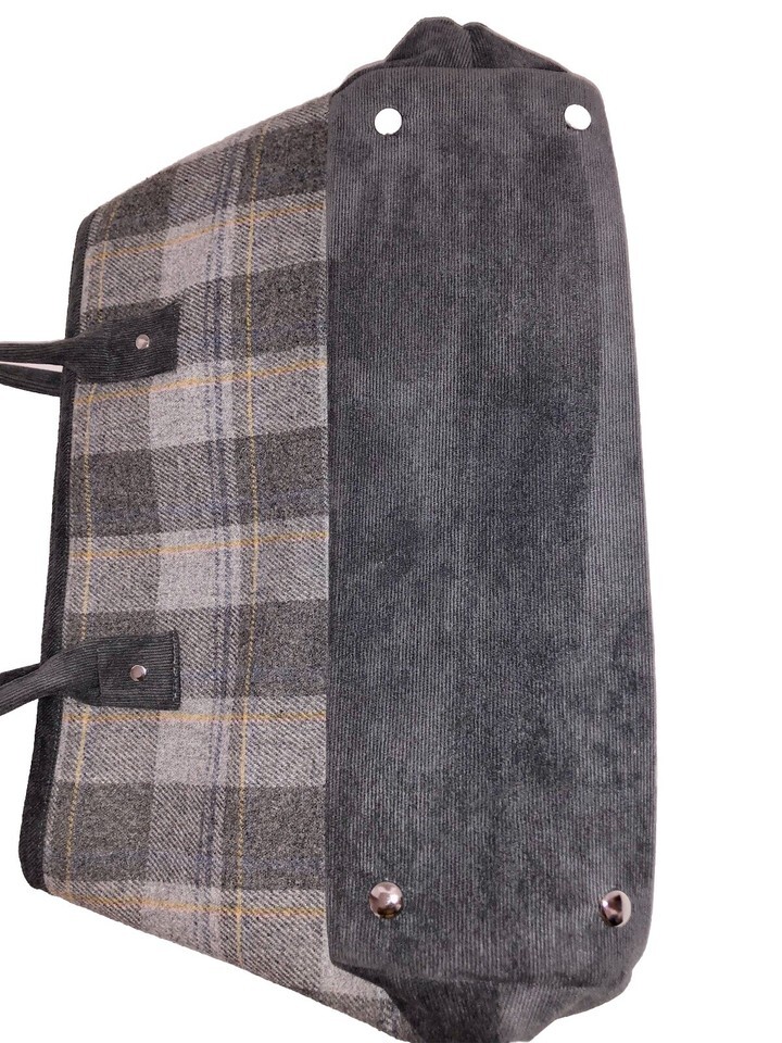 Earth Squared Wool Shoulder Tote Bag Purse Grey Mustard Plaid Tartan Corduroy