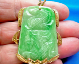 - Earth mined Antique green Jade Dragon Pendant 14k Gold Deco Medallion Luck Gift