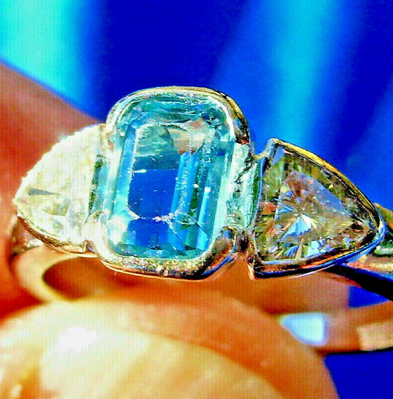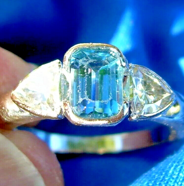 Earth mined Aquamarine Diamond Engagement Ring Hand made 18k Gold Solitaire 6.75