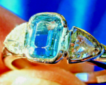 NATURAL EARTH-MINED AQUAMARINE DIAMOND 18K ENGAGEMENT STATEMENT RING.