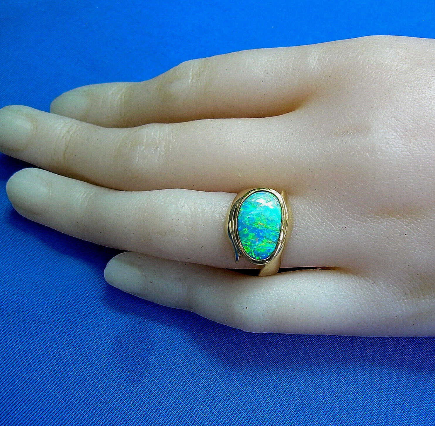 Earth mined Black Opal Deco Ring Designer Handmade 14k Solid Gold Statement 6.25