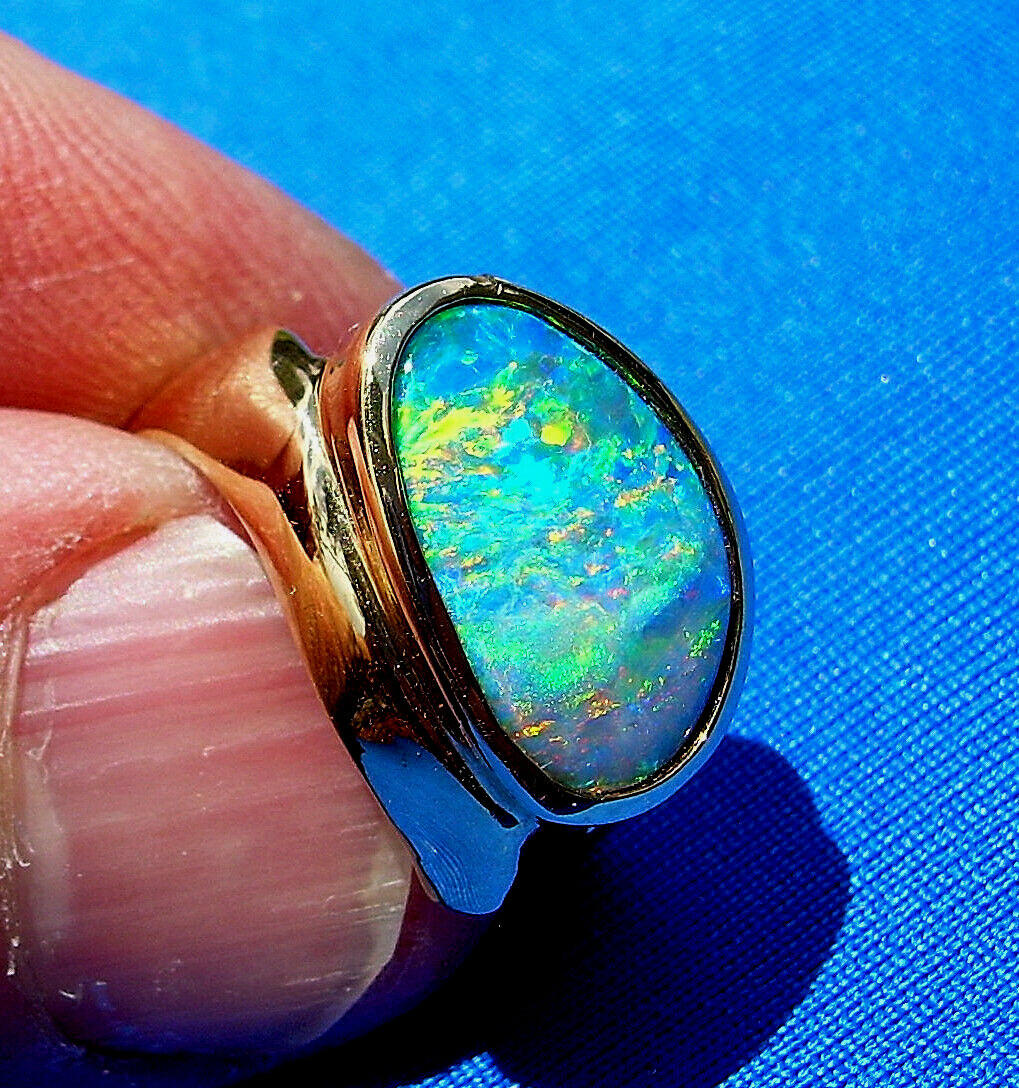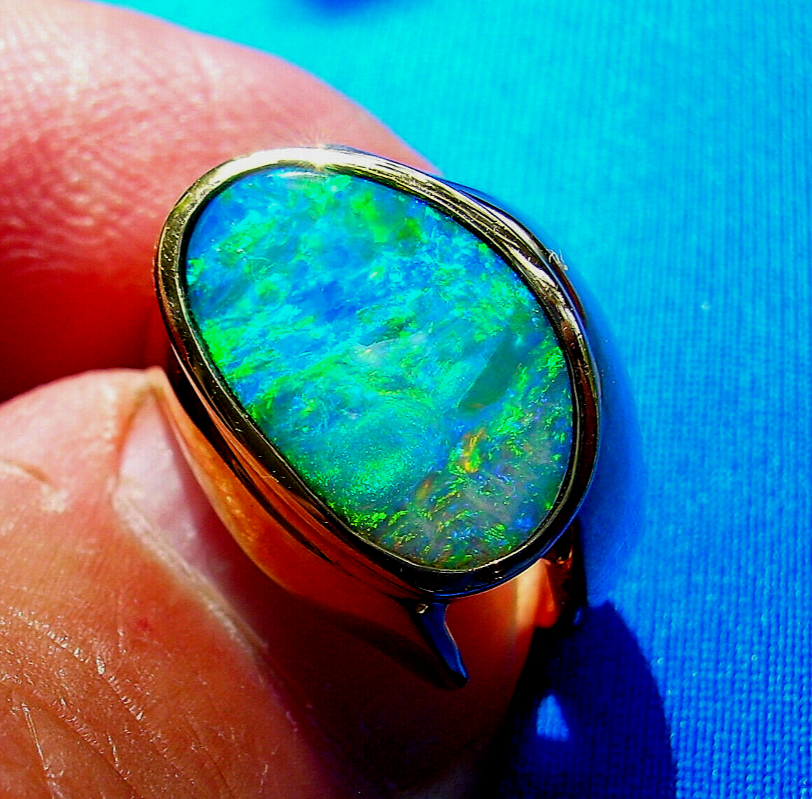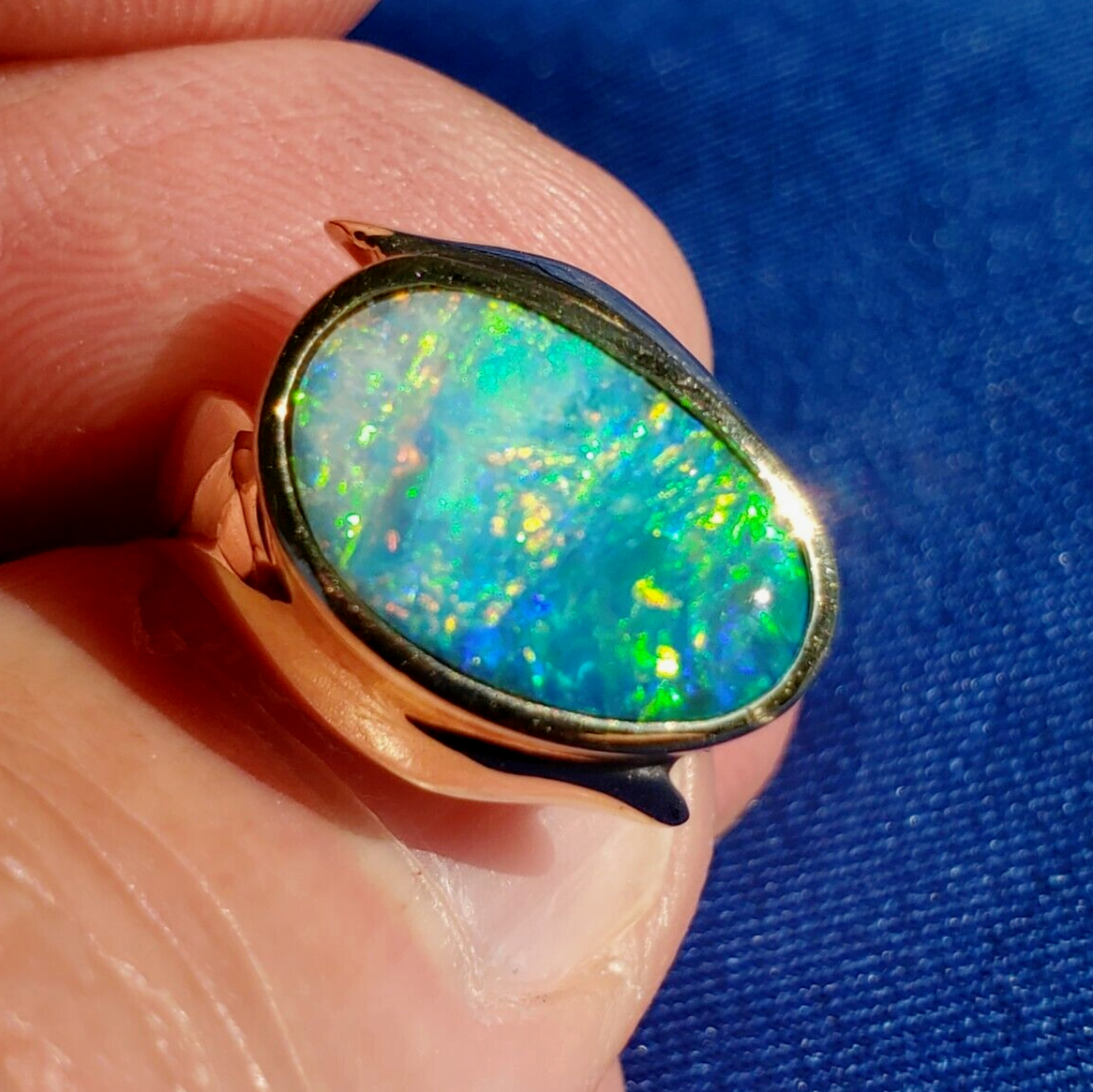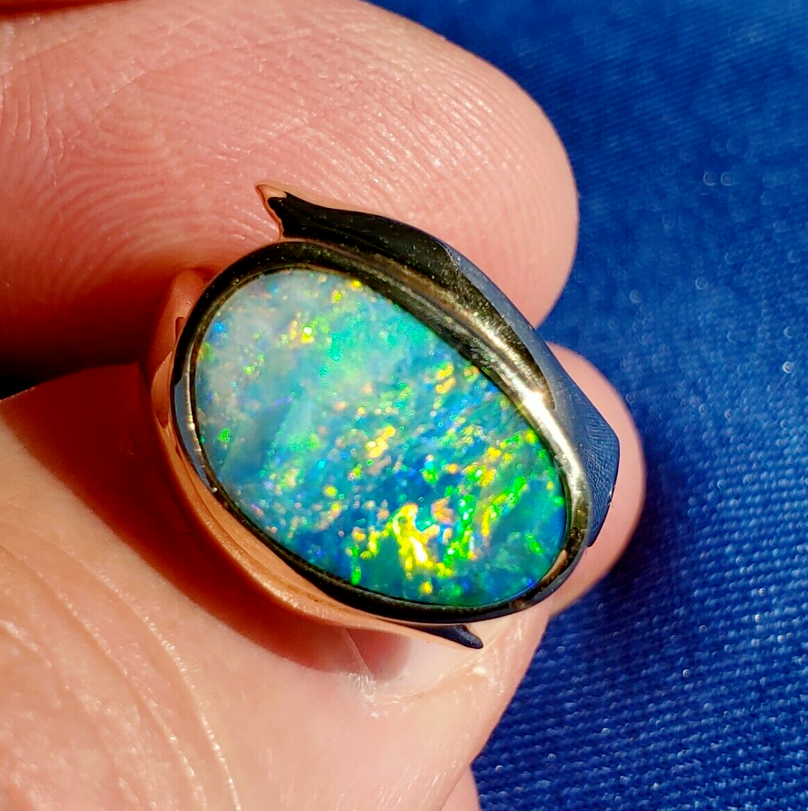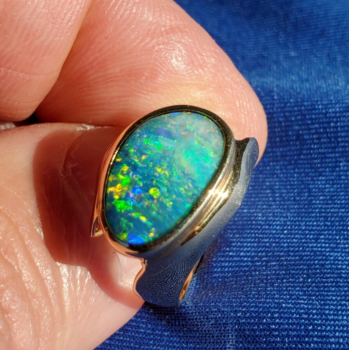 SOLID AUSTRALIAN BLACK BOULDER OPAL STATEMENT RING 14K.