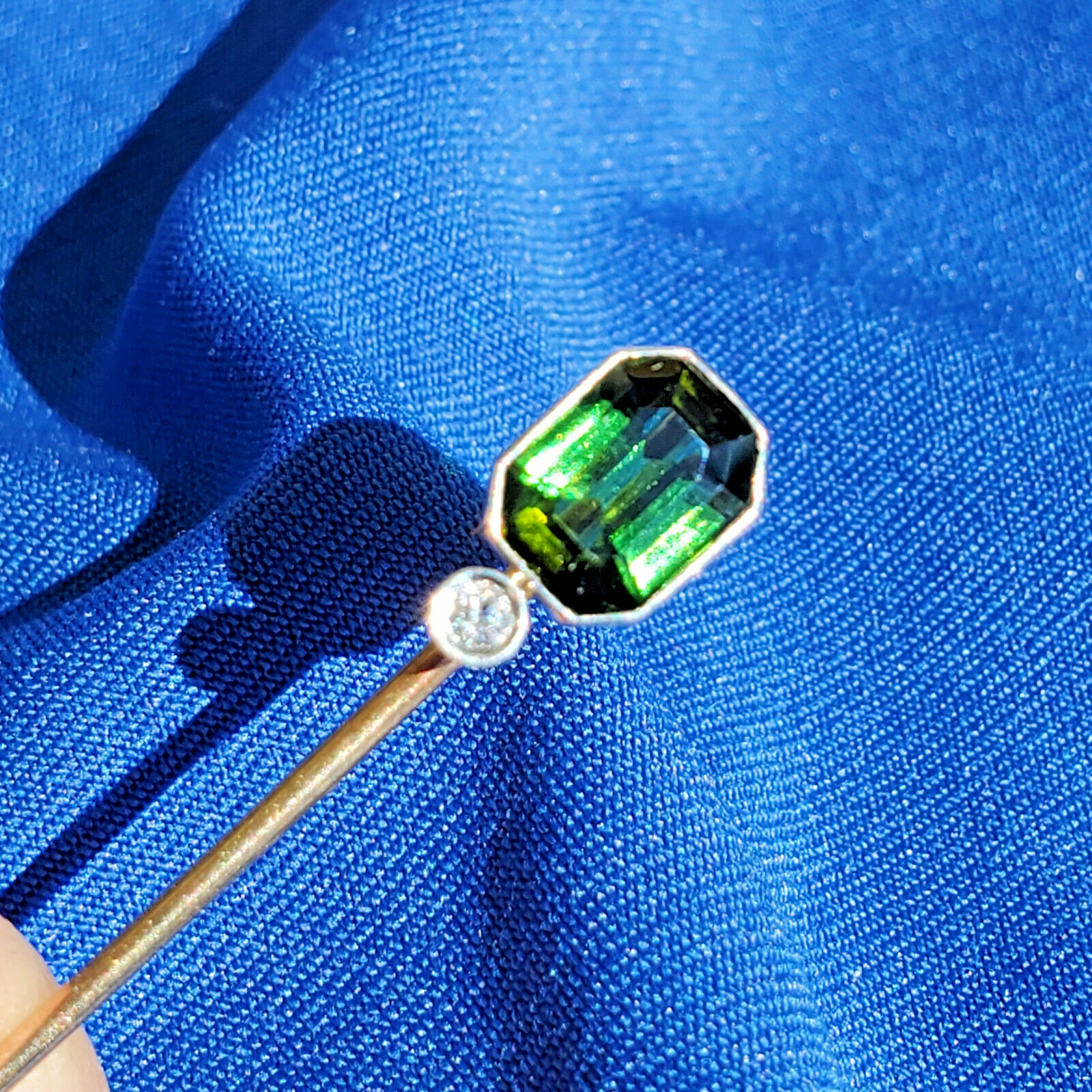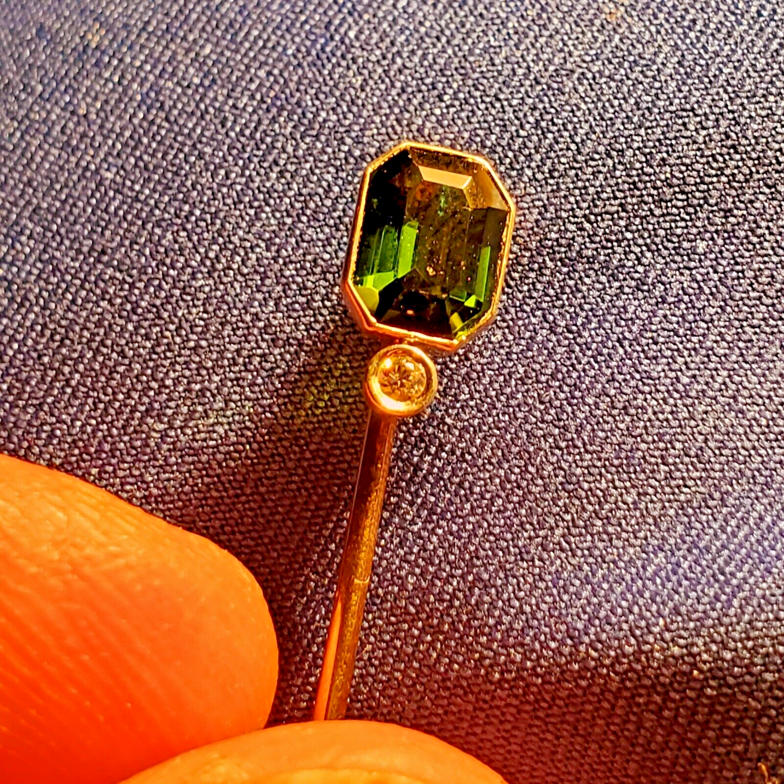 Earth mined Demantoid Deco Pin Gatsby era Antique Platinum 14k Gold Signed