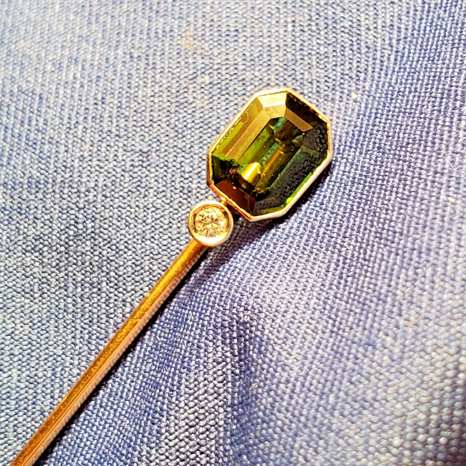 - Earth mined Demantoid Deco Pin Gatsby era Antique Platinum 14k Gold Signed