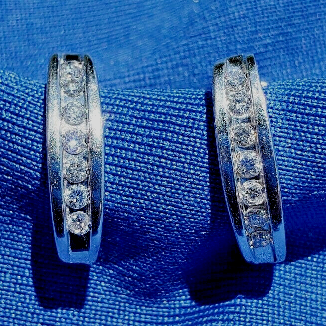 - Earth mined Diamond Bar European Style HUGGIE Earrings Channel 14k White Gold