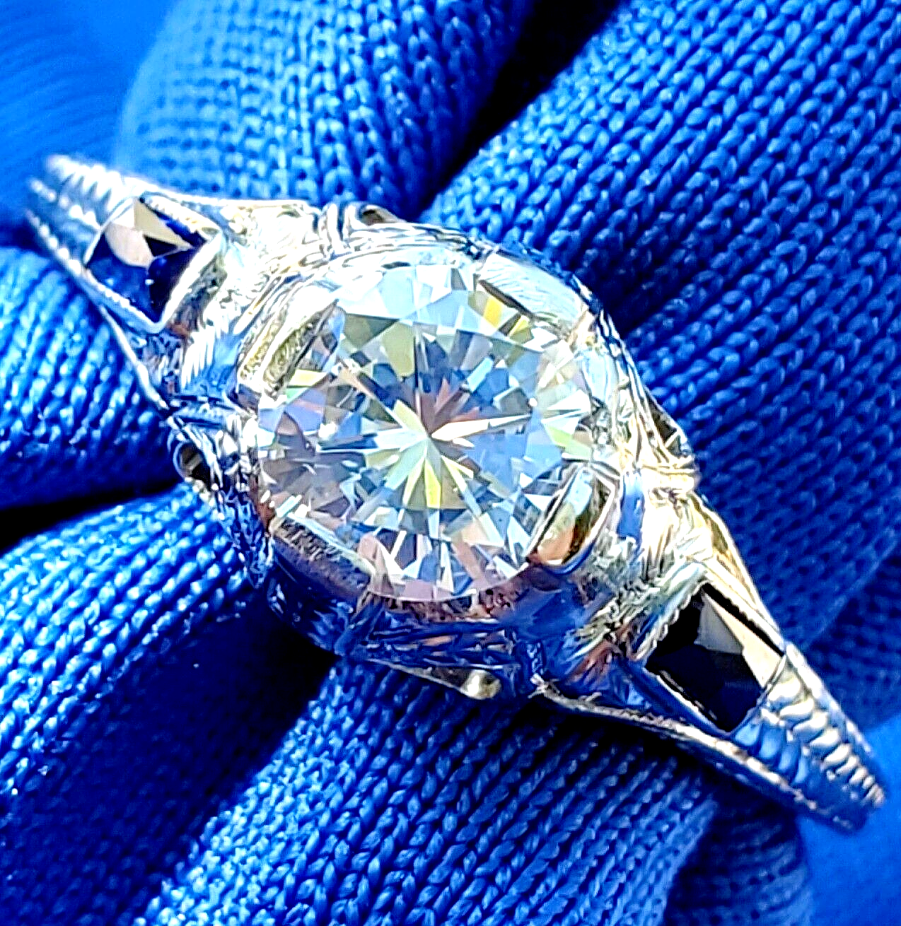 EXOTIC DIAMOND SAPPHIRE GATSBY STYLE SOLITAIRE.