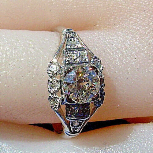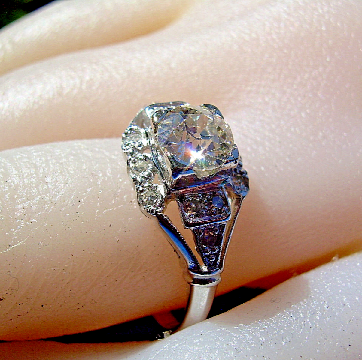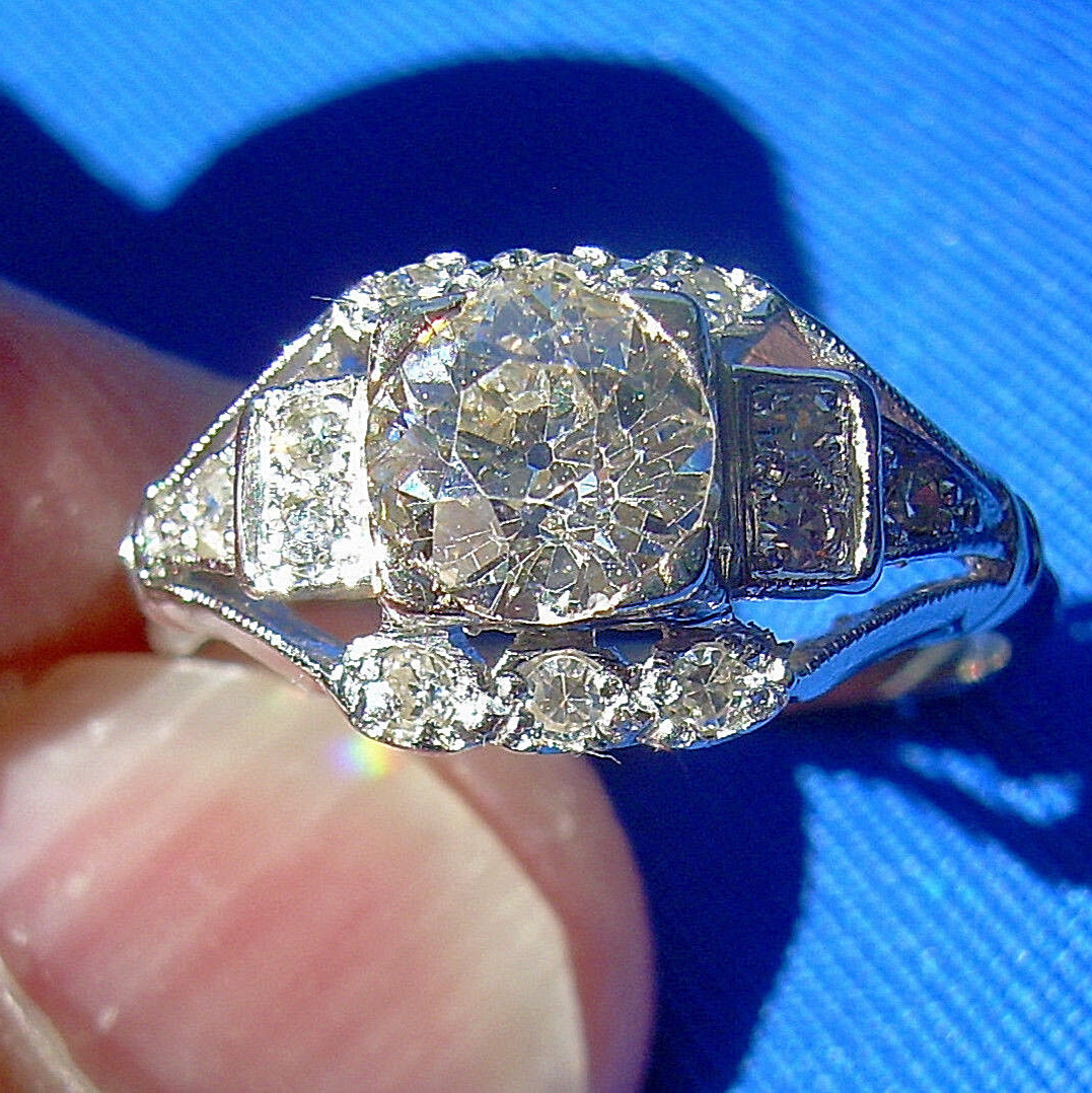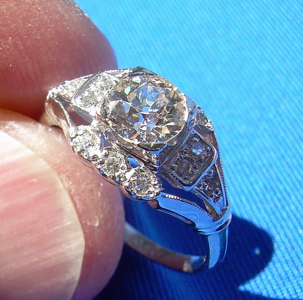 Earth mined Diamond Deco Engagement Ring Vintage Designer Platinum Solitaire 8