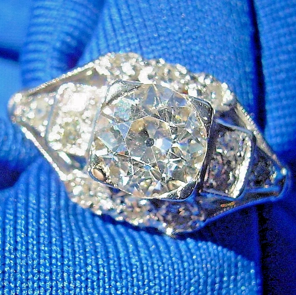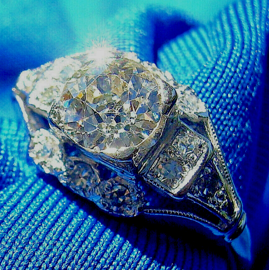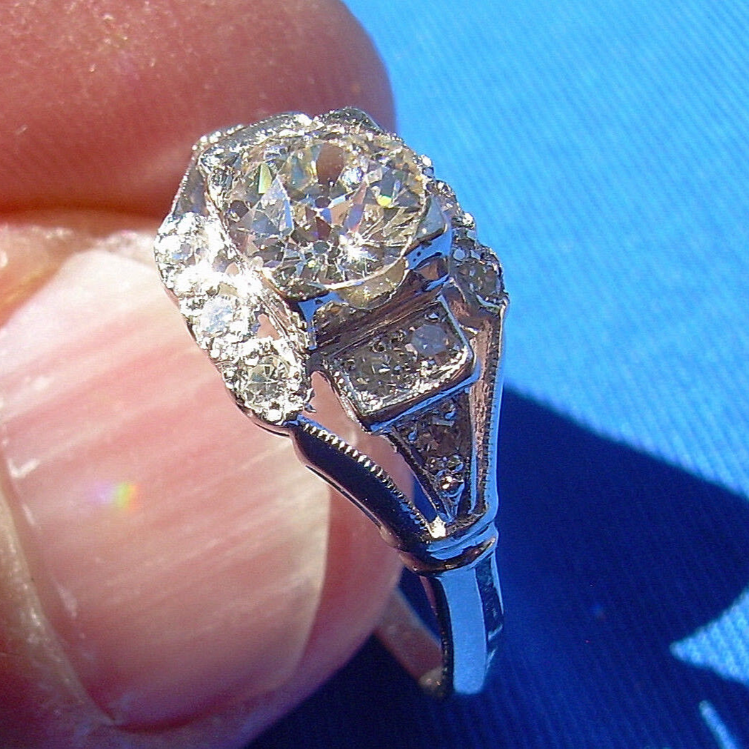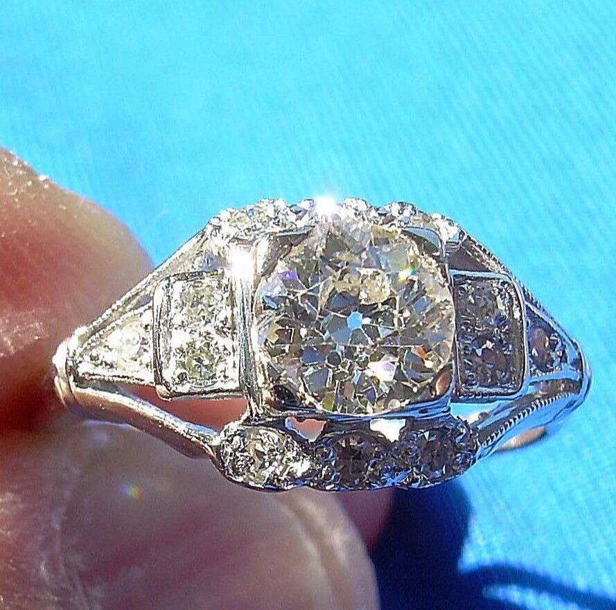 Earth mined Diamond Deco Engagement Ring Vintage Designer Platinum Solitaire 8