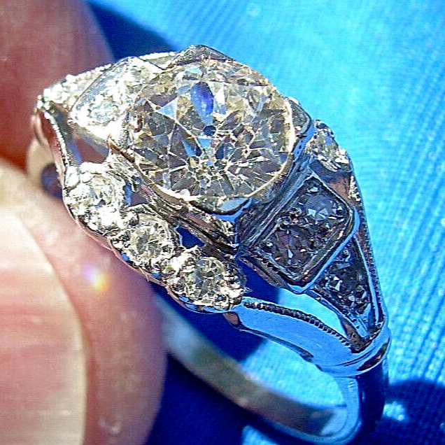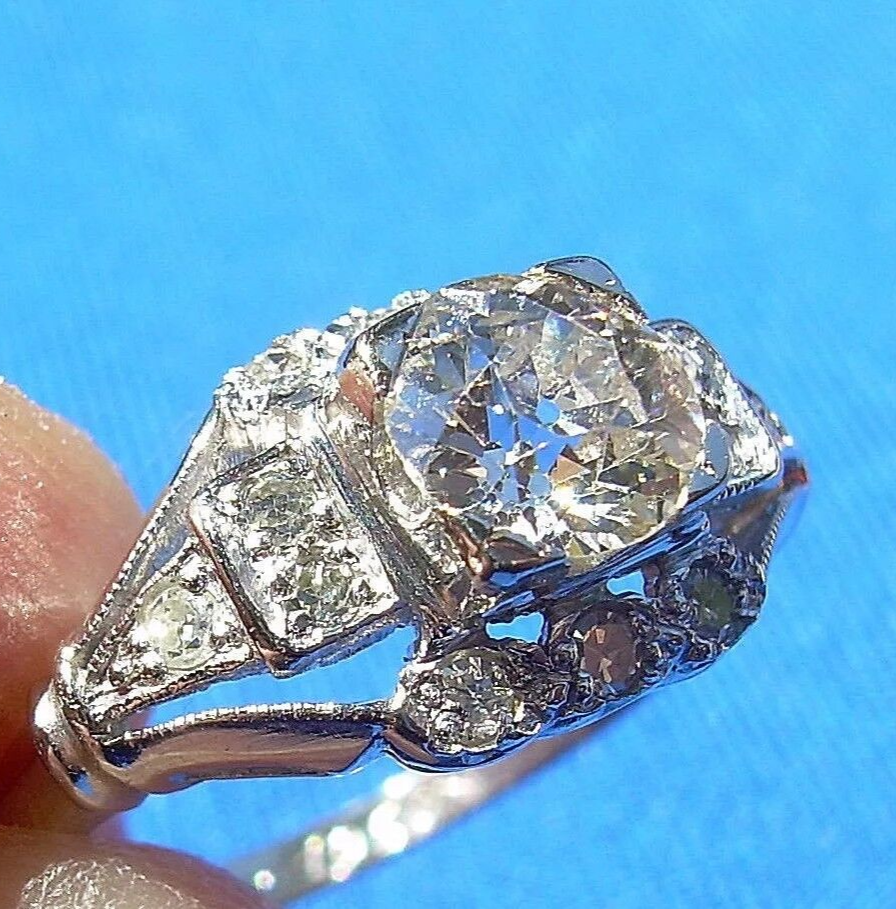 - Earth mined Diamond Deco Engagement Ring Vintage Designer Platinum Solitaire 8