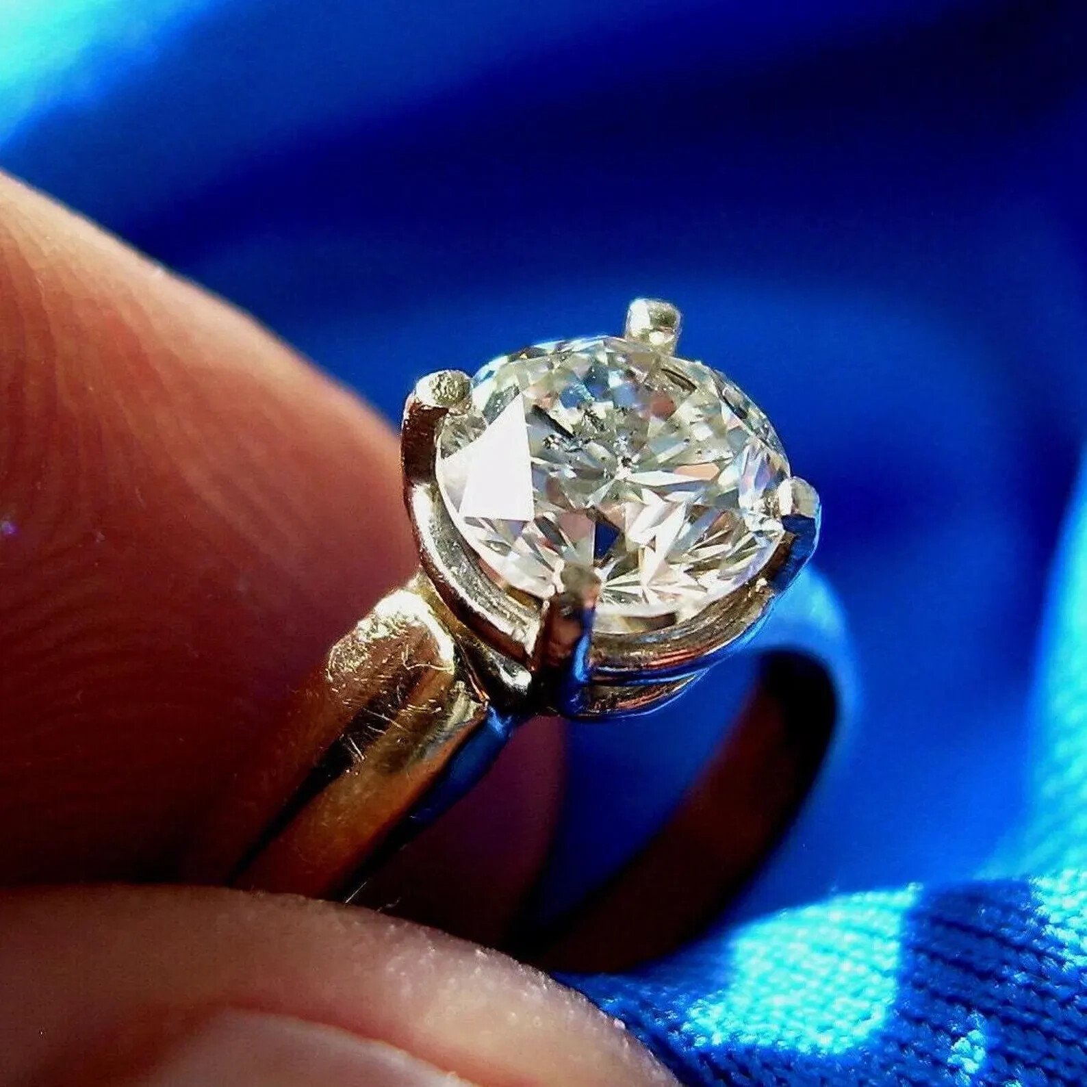 - Earth mined Diamond Deco Engagement Ring Vintage Estate Solitaire Solid 14k Gold