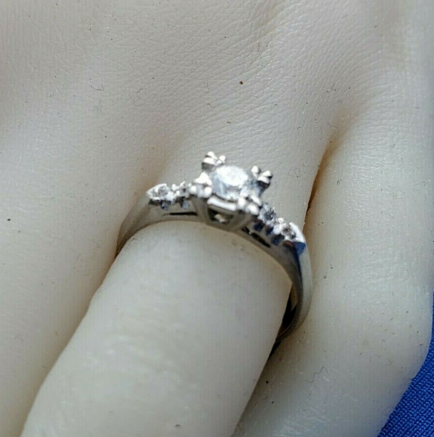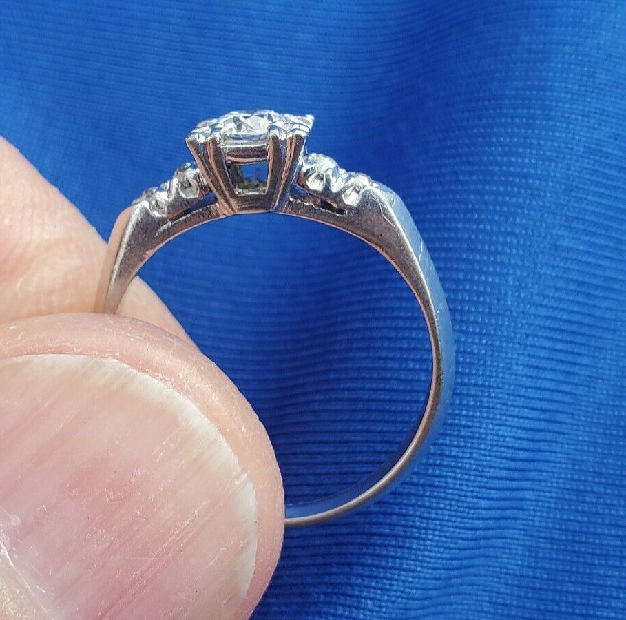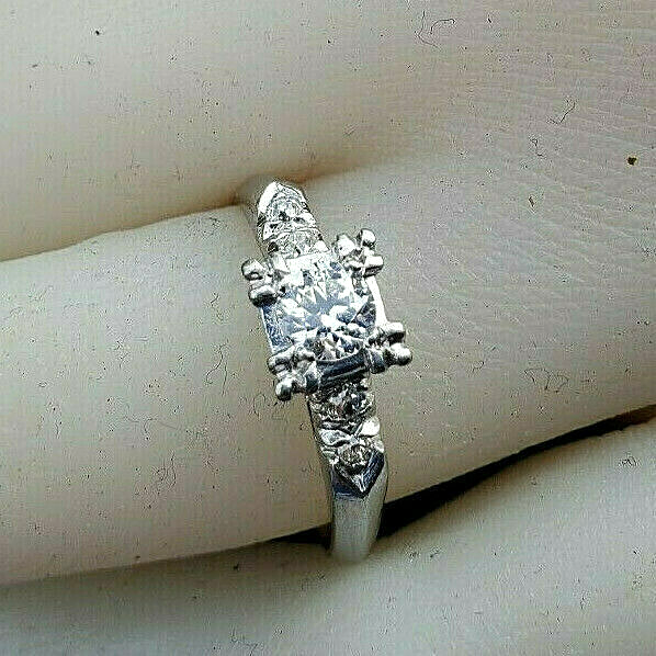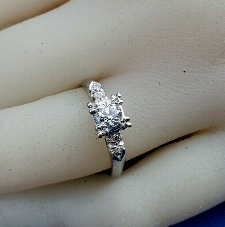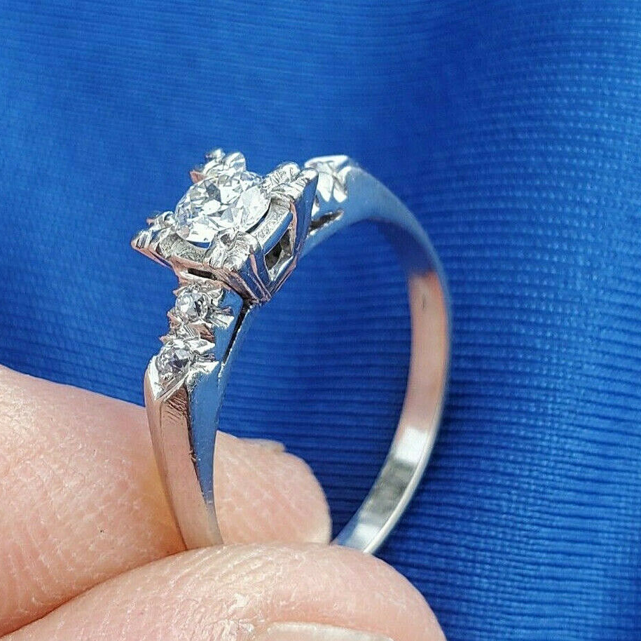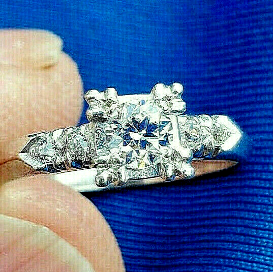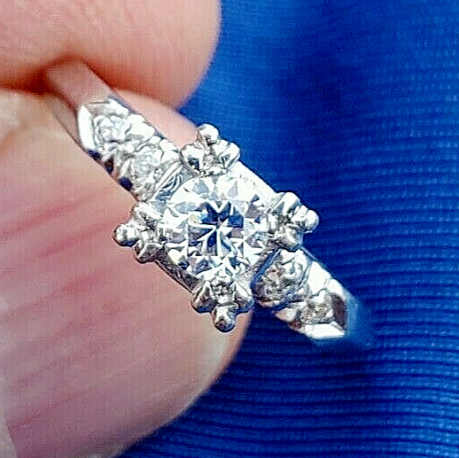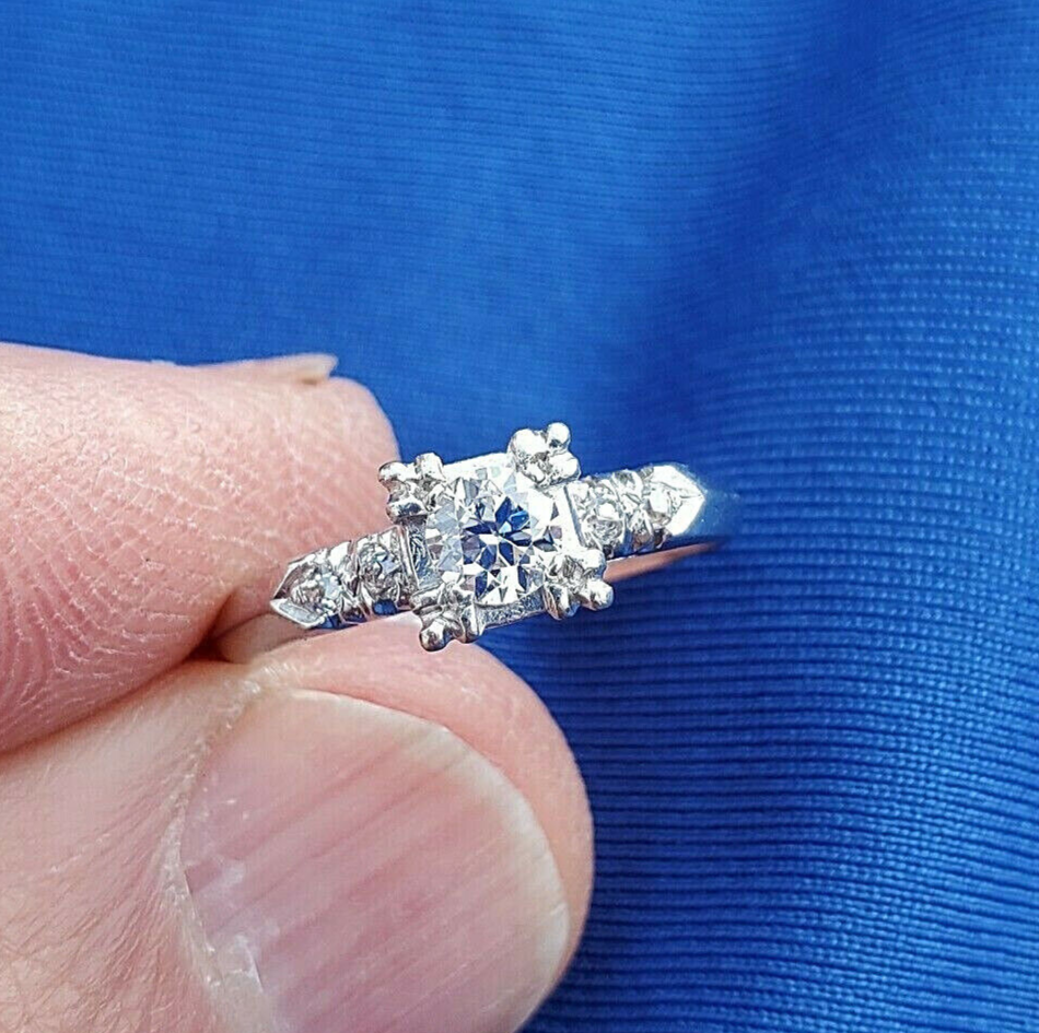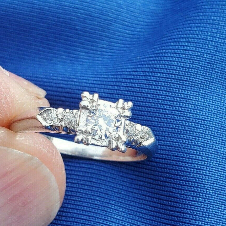 - Earth mined Diamond Deco Engagement Ring Vintage Solid Platinum Solitaire 6.5