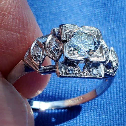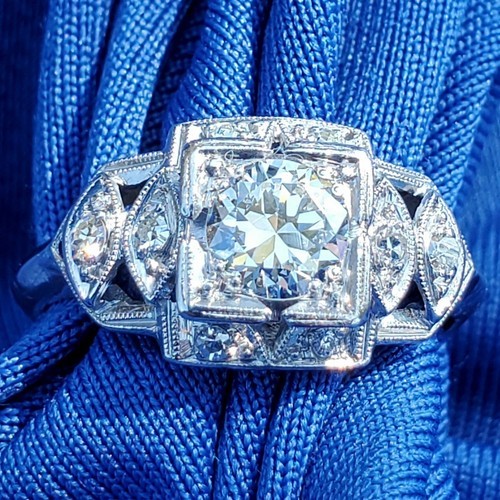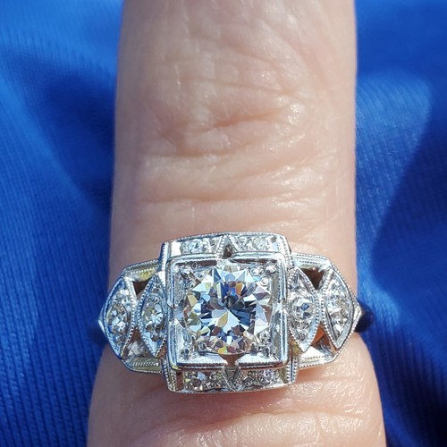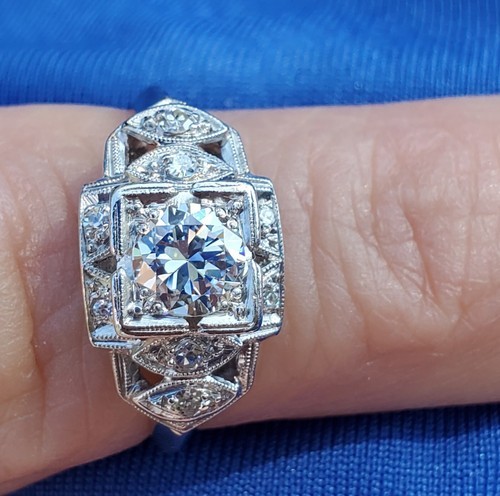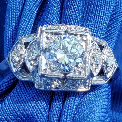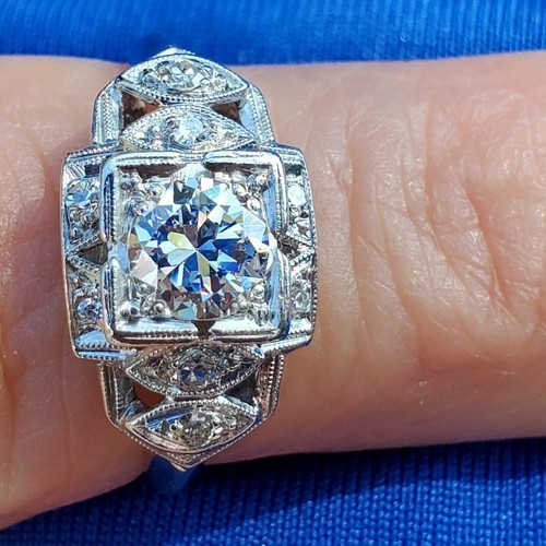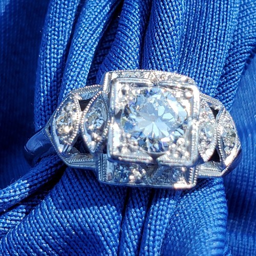 Earth mined Diamond Deco Engagement Statement Ring Estate Platinum Solitaire 6.5