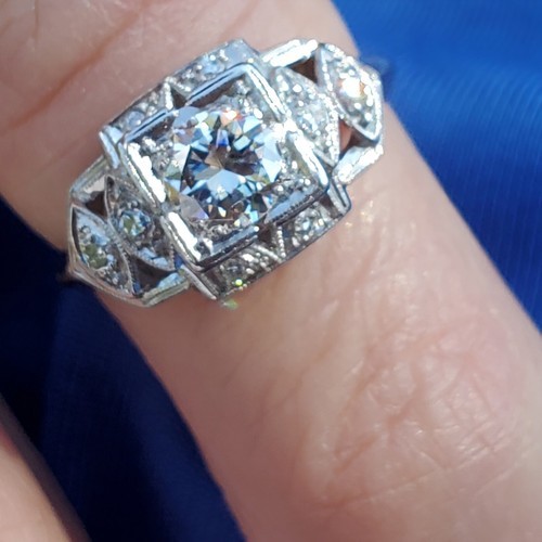 - Earth mined Diamond Deco Engagement Statement Ring Estate Platinum Solitaire 6.5
