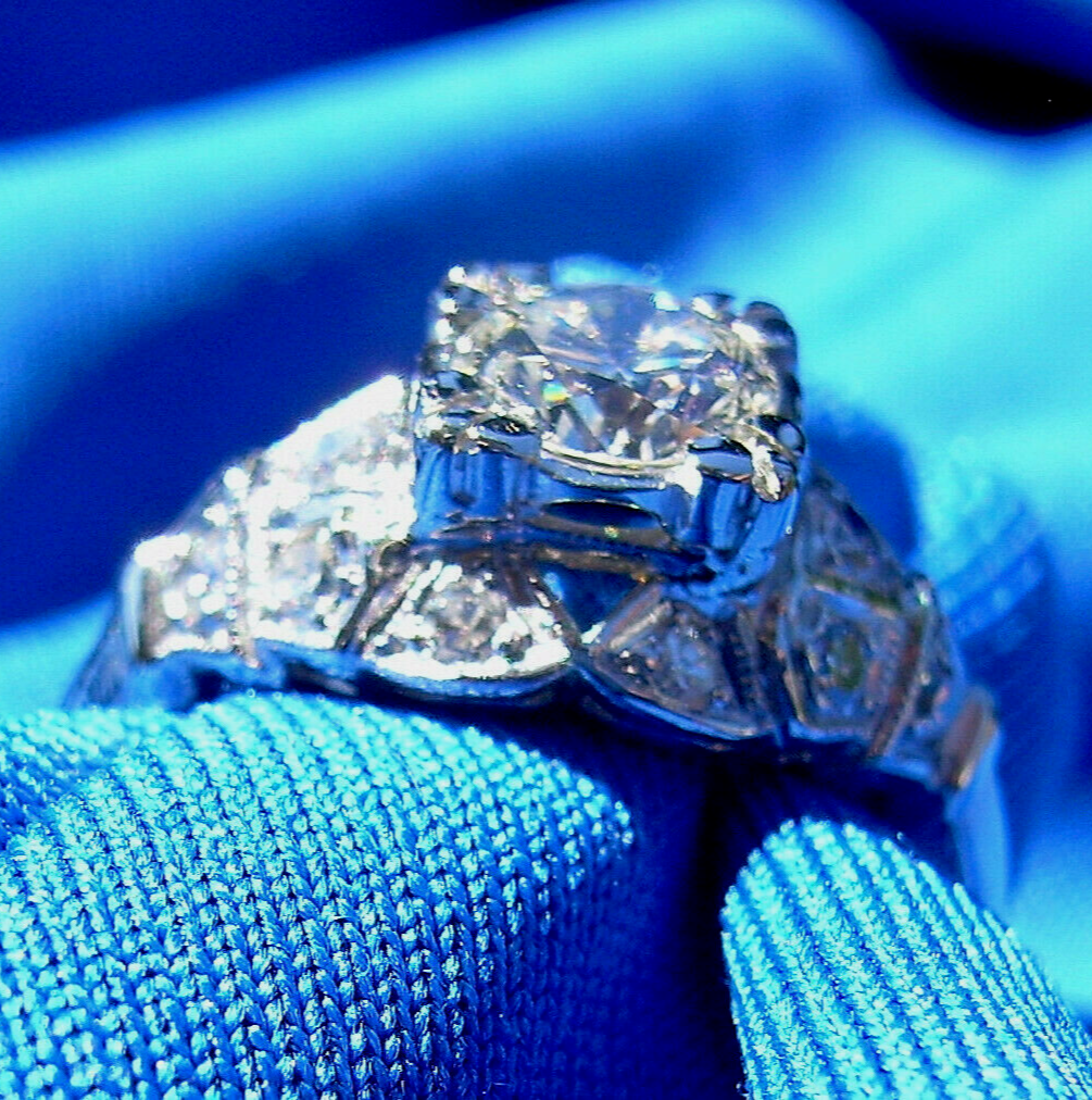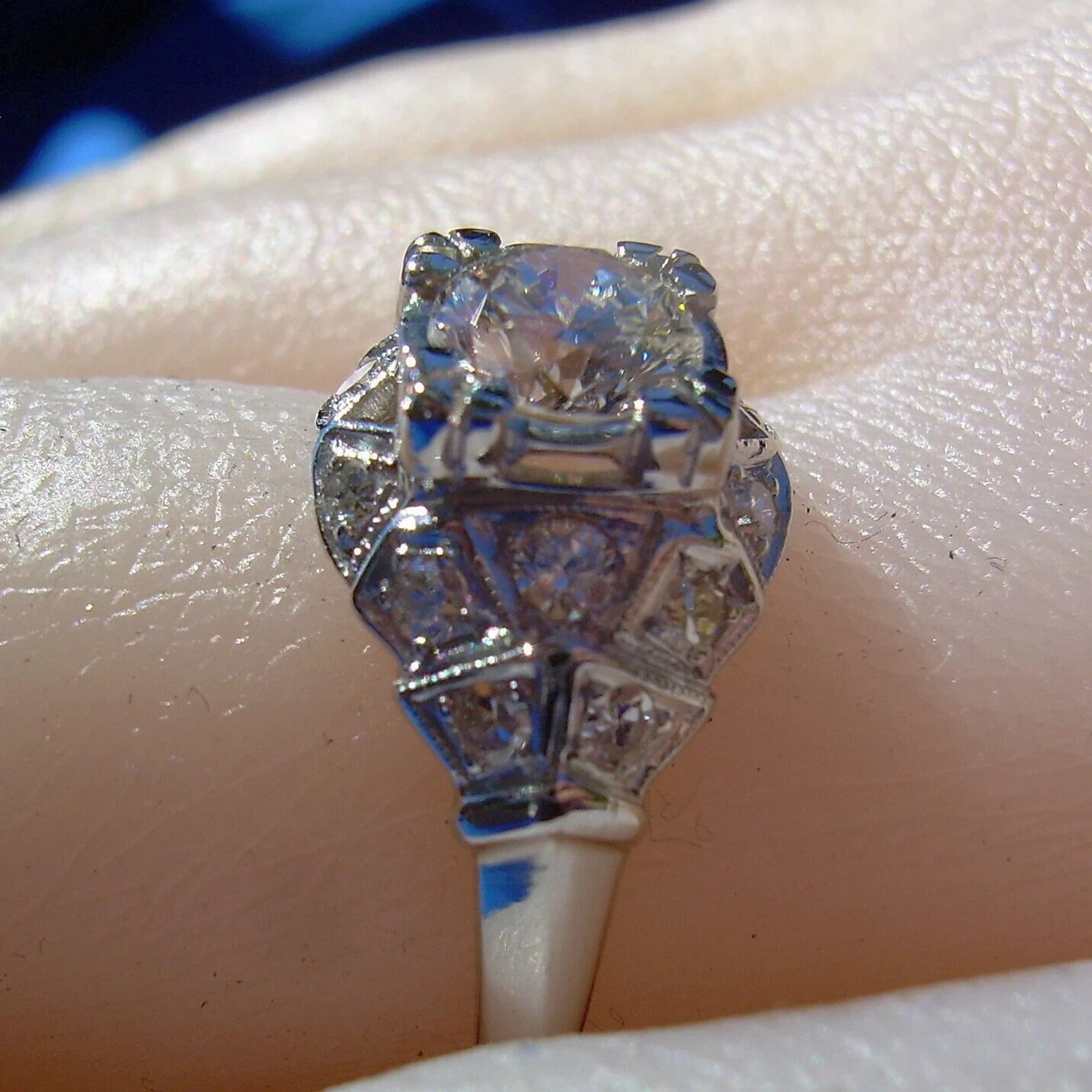 Earth mined Diamond Deco Engagement Statement Ring Estate Platinum Solitaire S 6