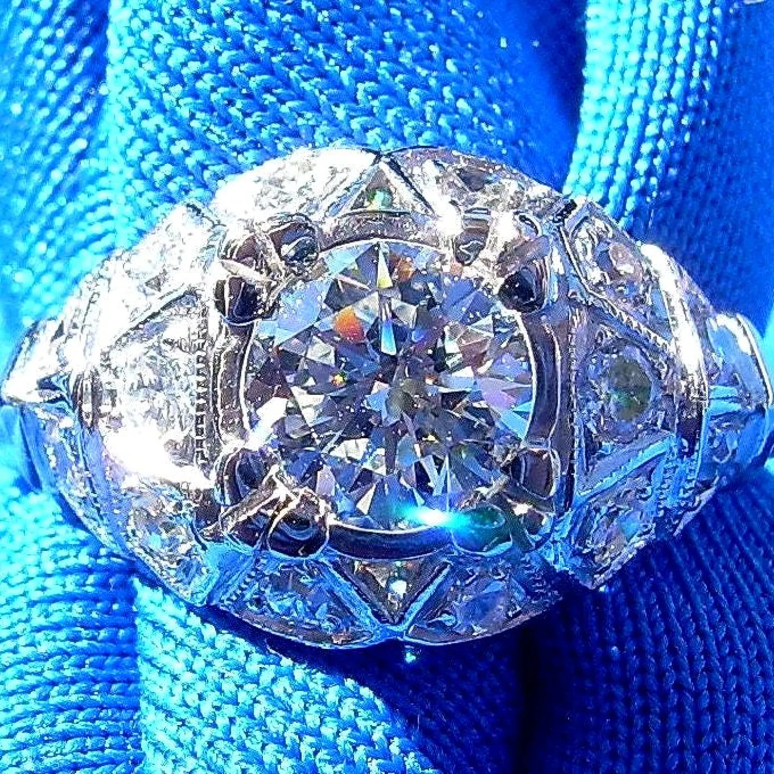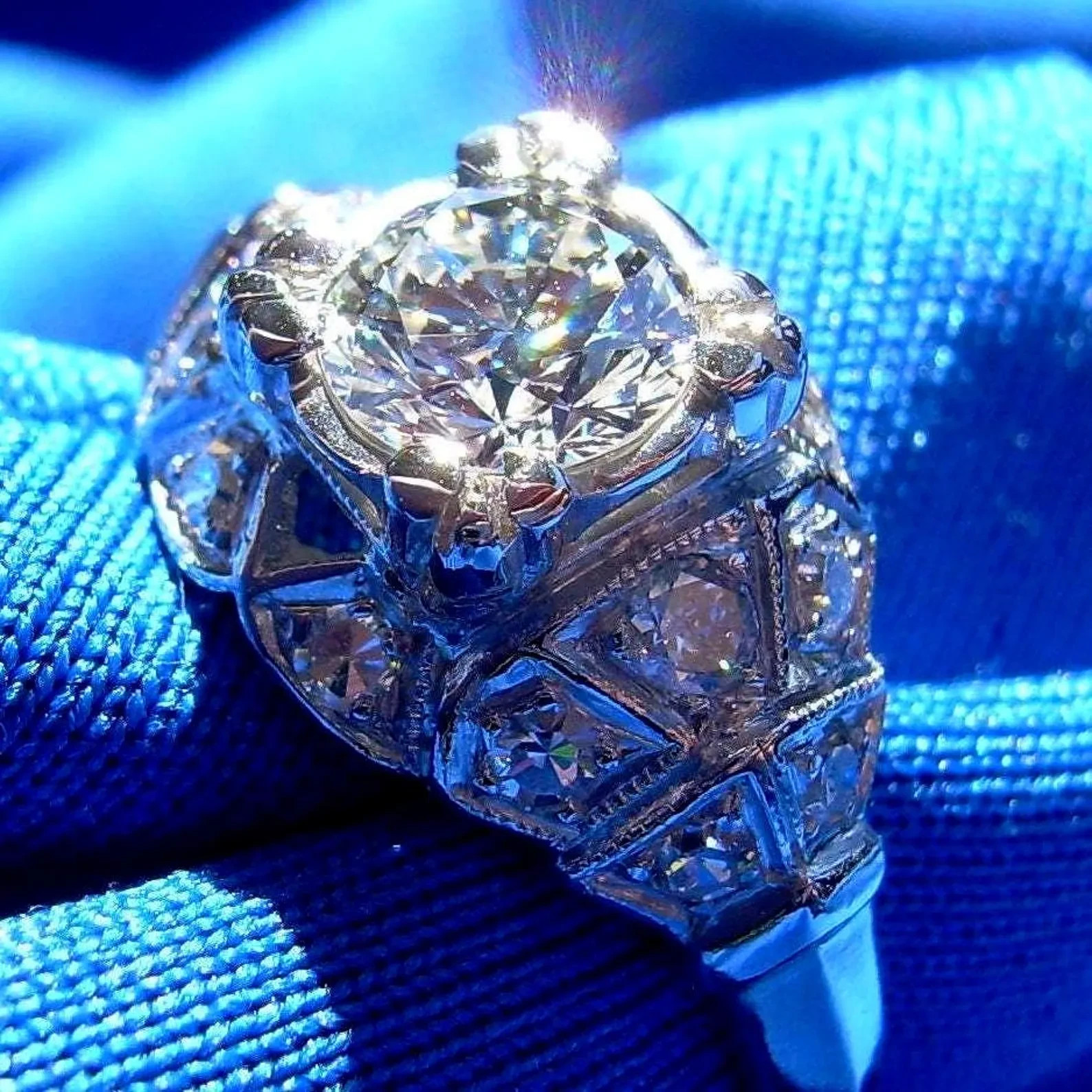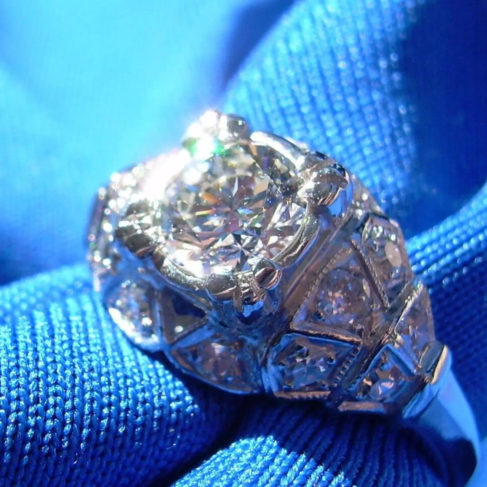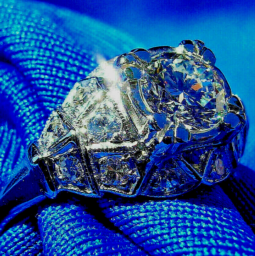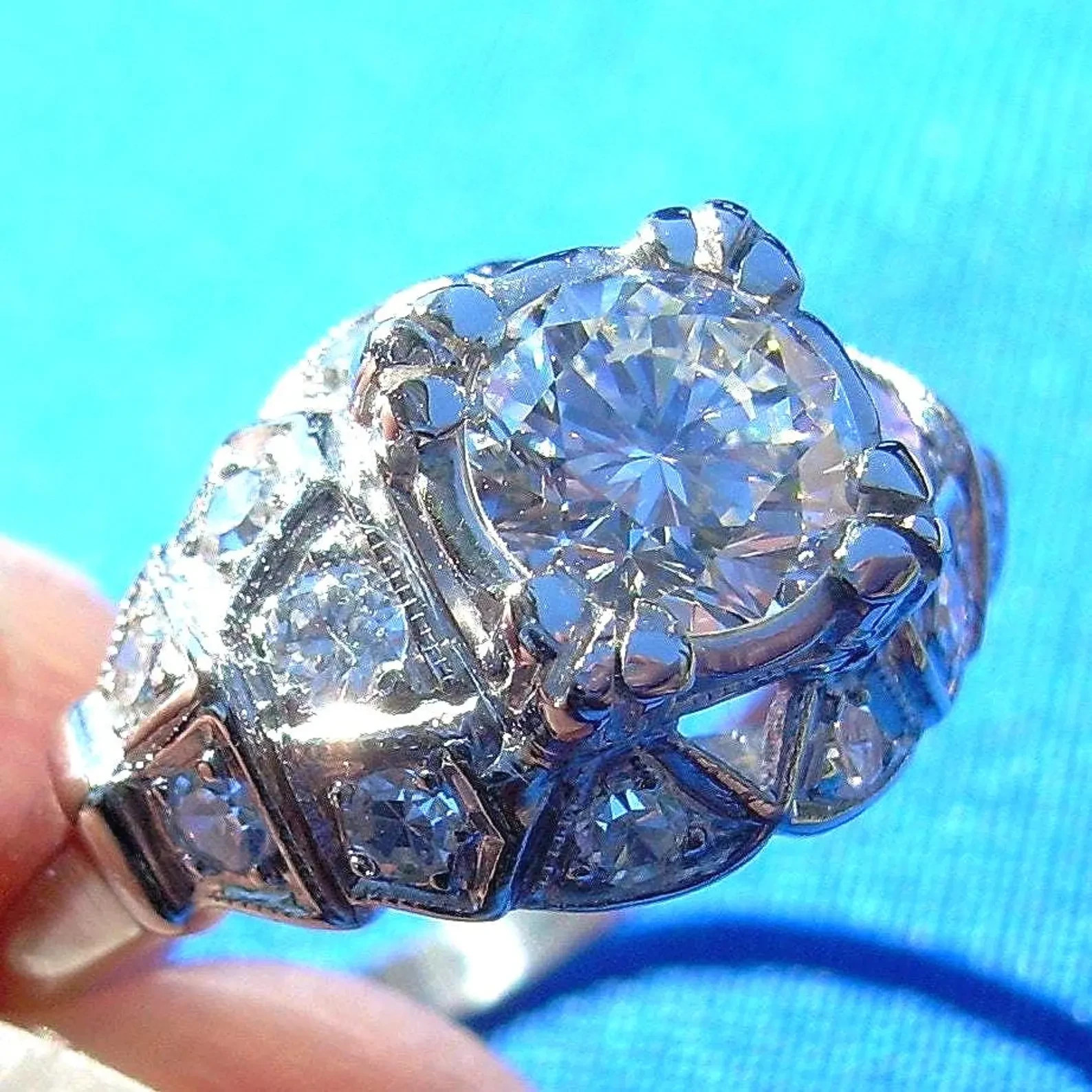 - Earth mined Diamond Deco Engagement Statement Ring Estate Platinum Solitaire S 6