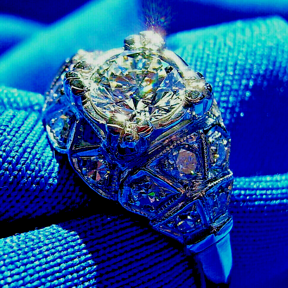 NATURAL EARTH-MINED DIAMOND PLATINUM DECO GATSBY ERA ENGAGEMENT RING.