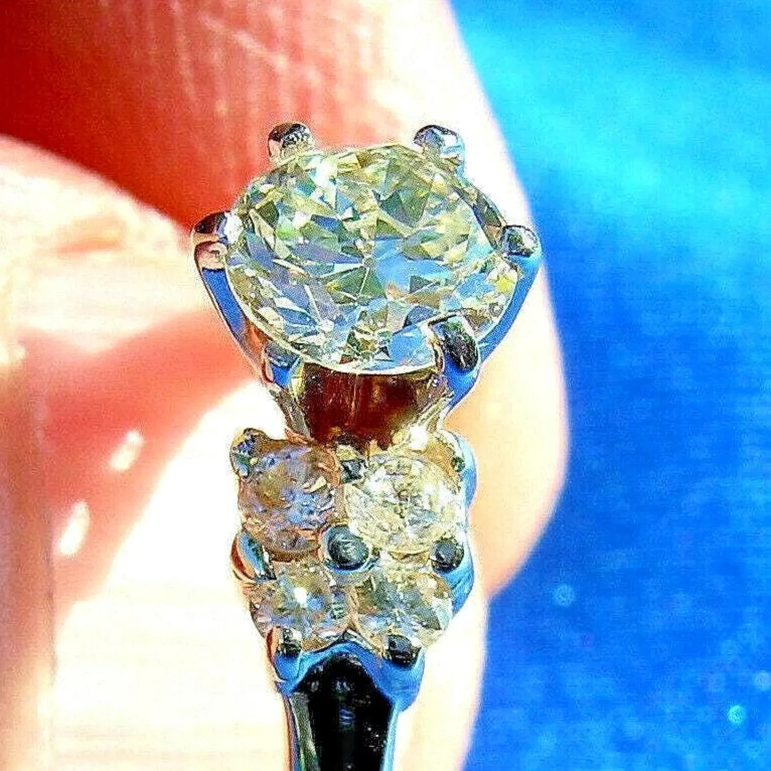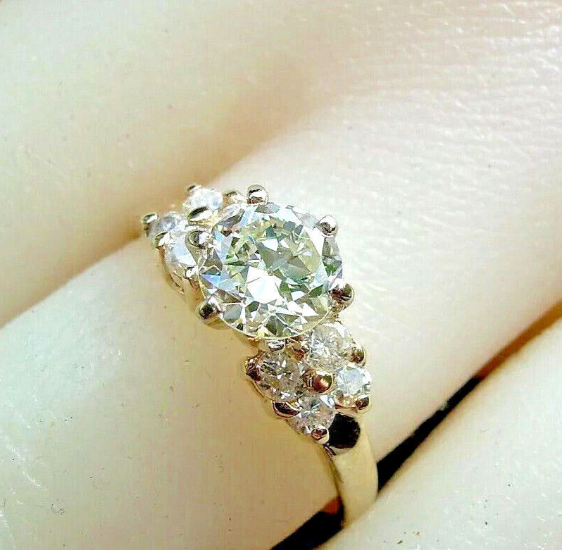 Earth mined Diamond Deco European cut Engagement Ring 14K Gold Vintage Solitaire