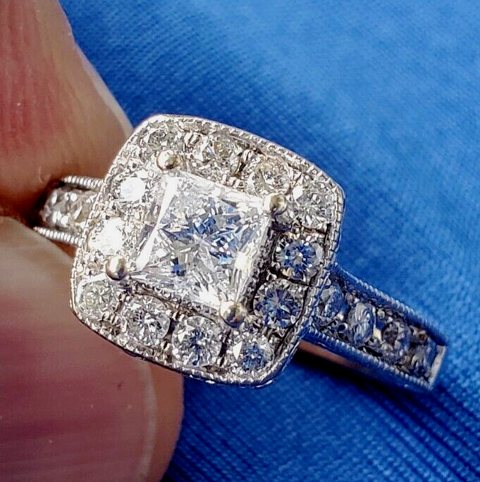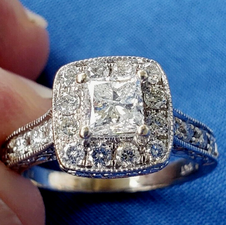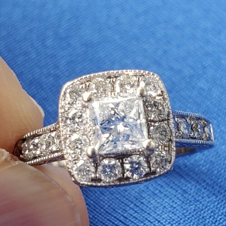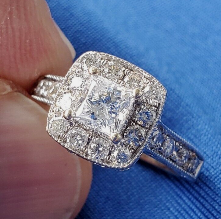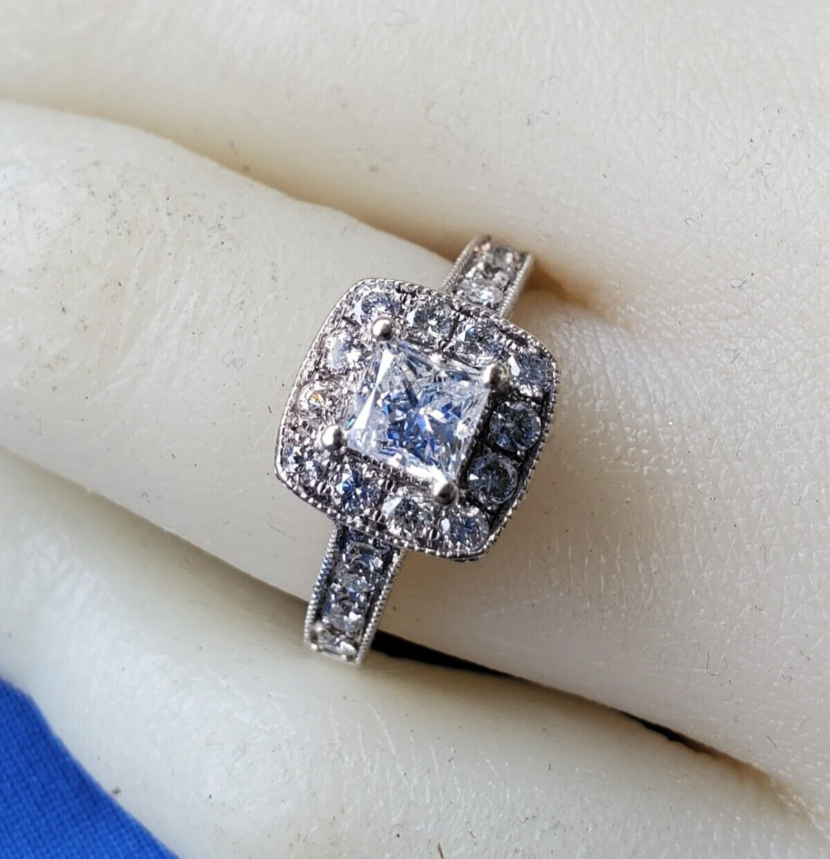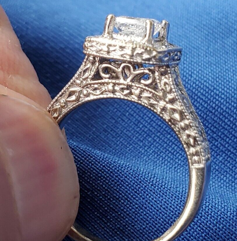 Earth mined Diamond Deco Halo Engagement Ring Solid 14k White Gold Solitaire