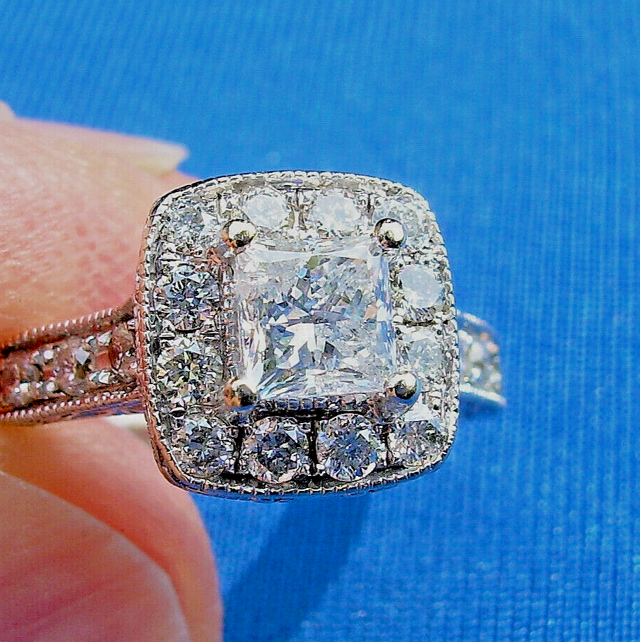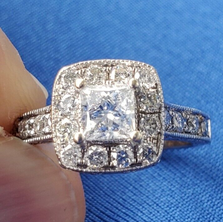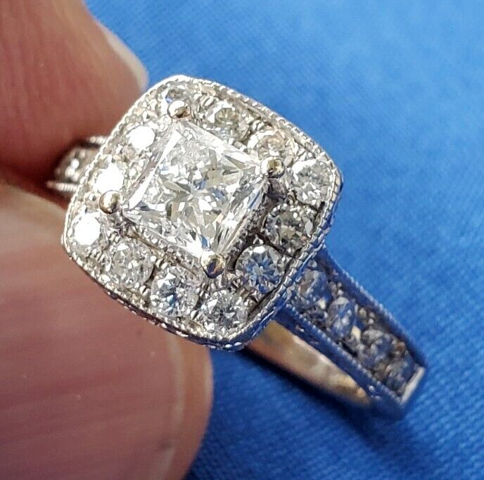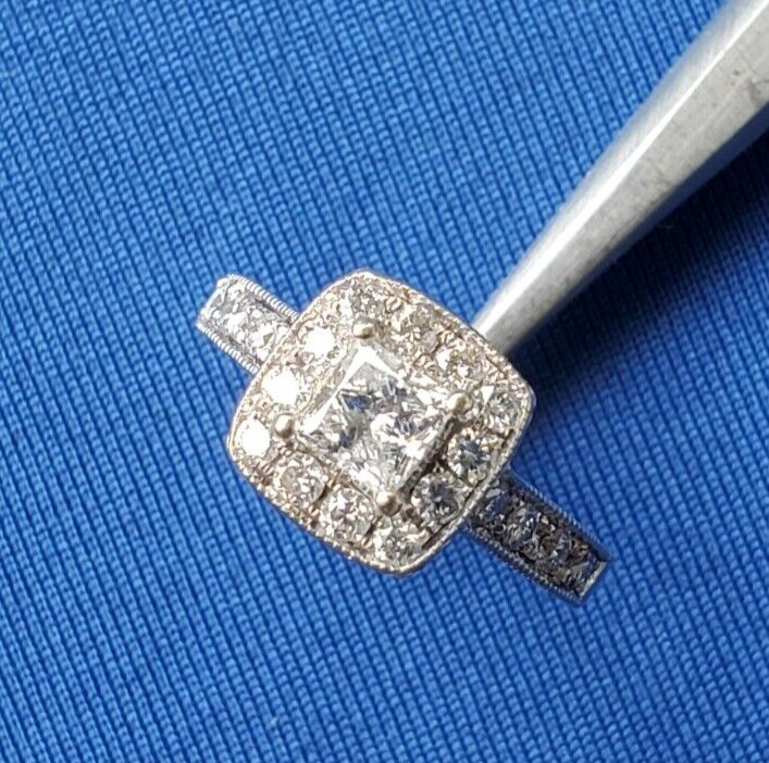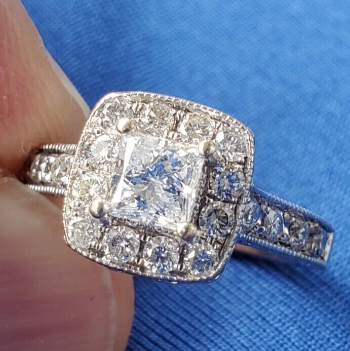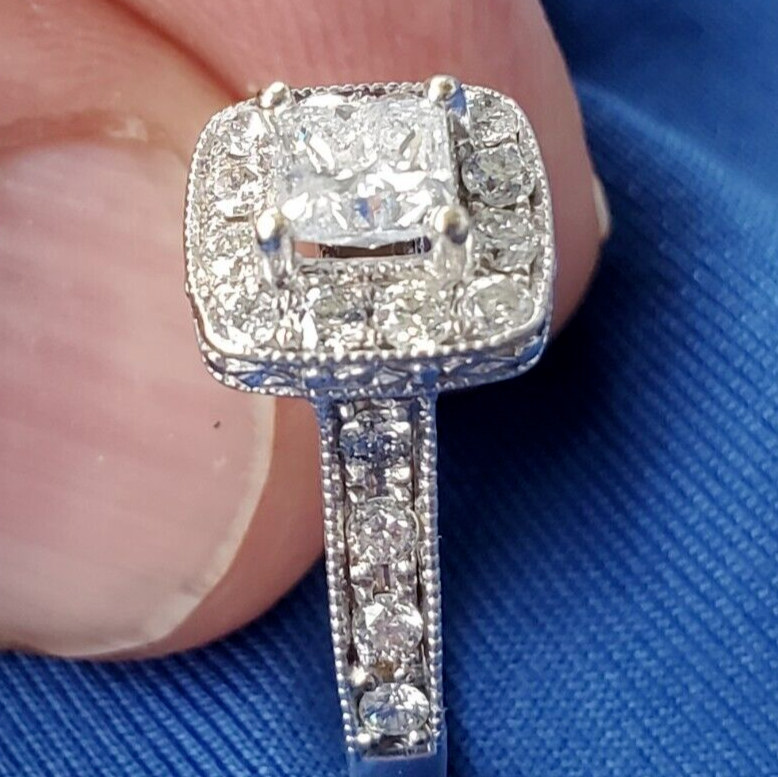 Earth mined Diamond Deco Halo Engagement Ring Solid 14k White Gold Solitaire