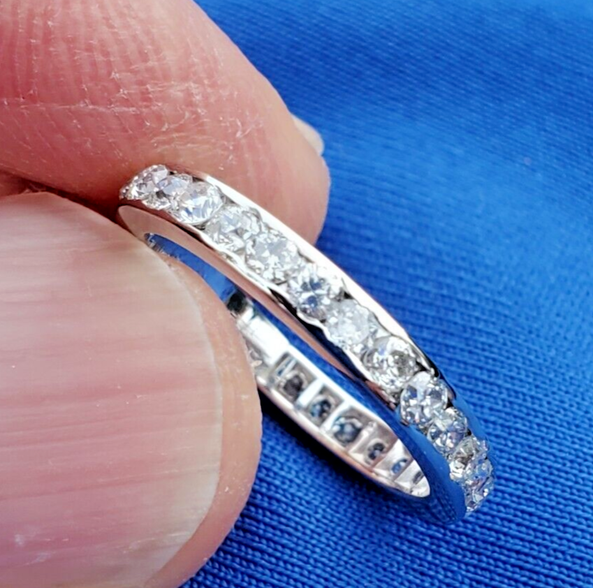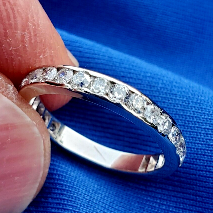 EUROPEAN CUT DIAMOND PLATINUM ETERNITY WEDDING RING.