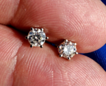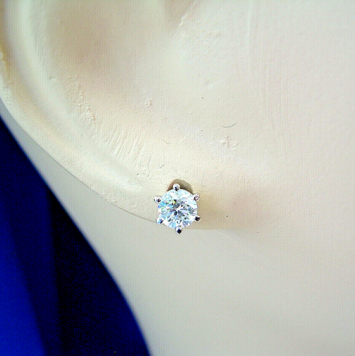 - Earth mined Diamond Earrings Deco Design Solitaire Studs Solid 14k White Gold