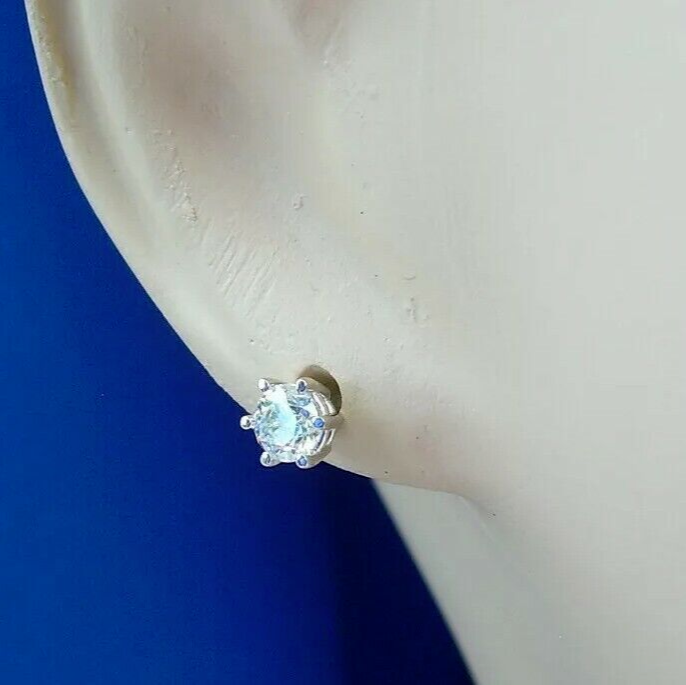 Earth mined Diamond Earrings Deco Design Solitaire Studs Solid 14k White Gold