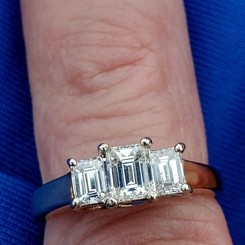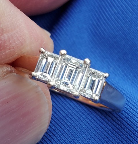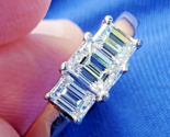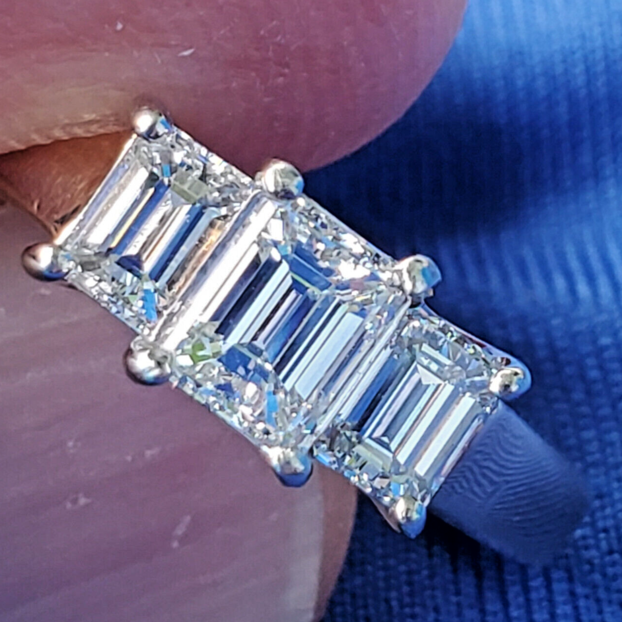 - Earth mined Diamond Emerald cut Deco Engagement Ring Vintage 3 stone Solitaire