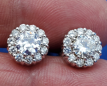 - Earth mined Diamond European Earrings Deco Style Halo Studs Solid 14k White Gold