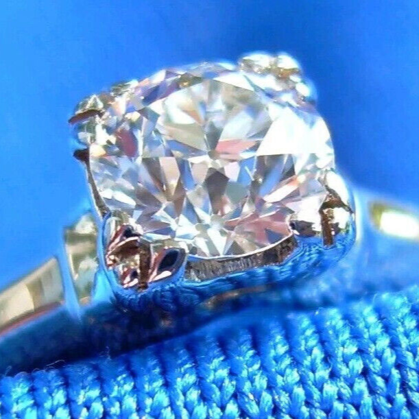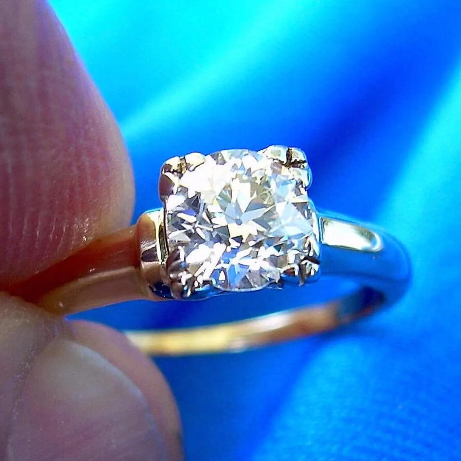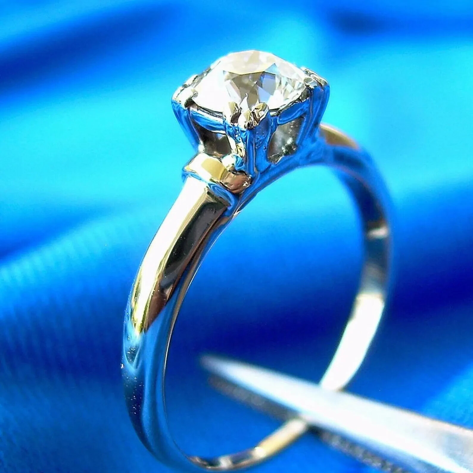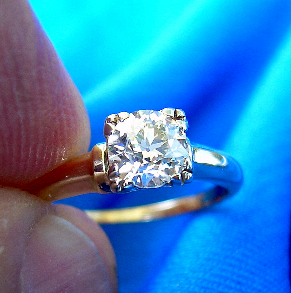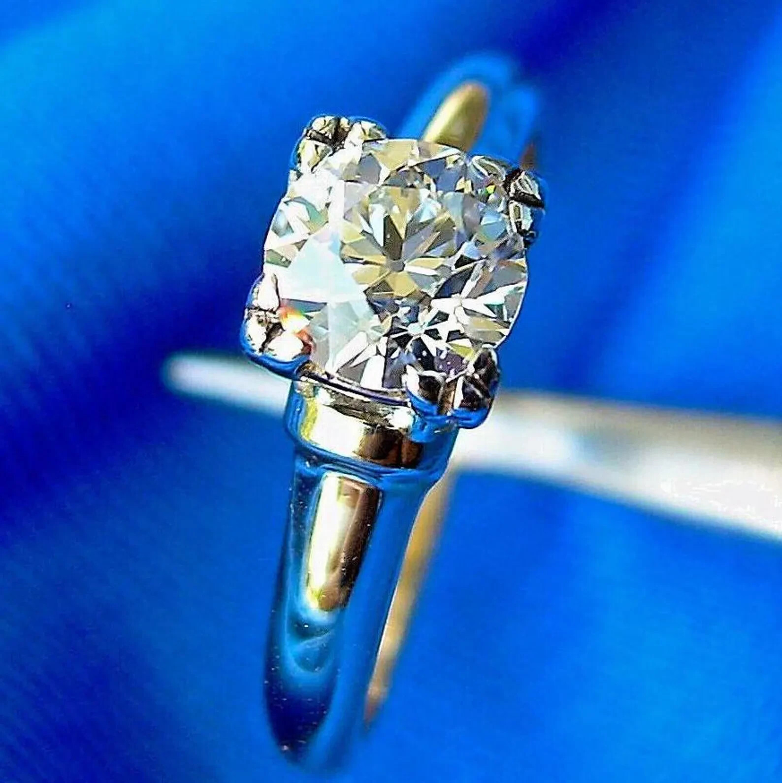 - Earth mined Diamond European cut Deco Engagement Ring Vintage Cushion Solitaire
