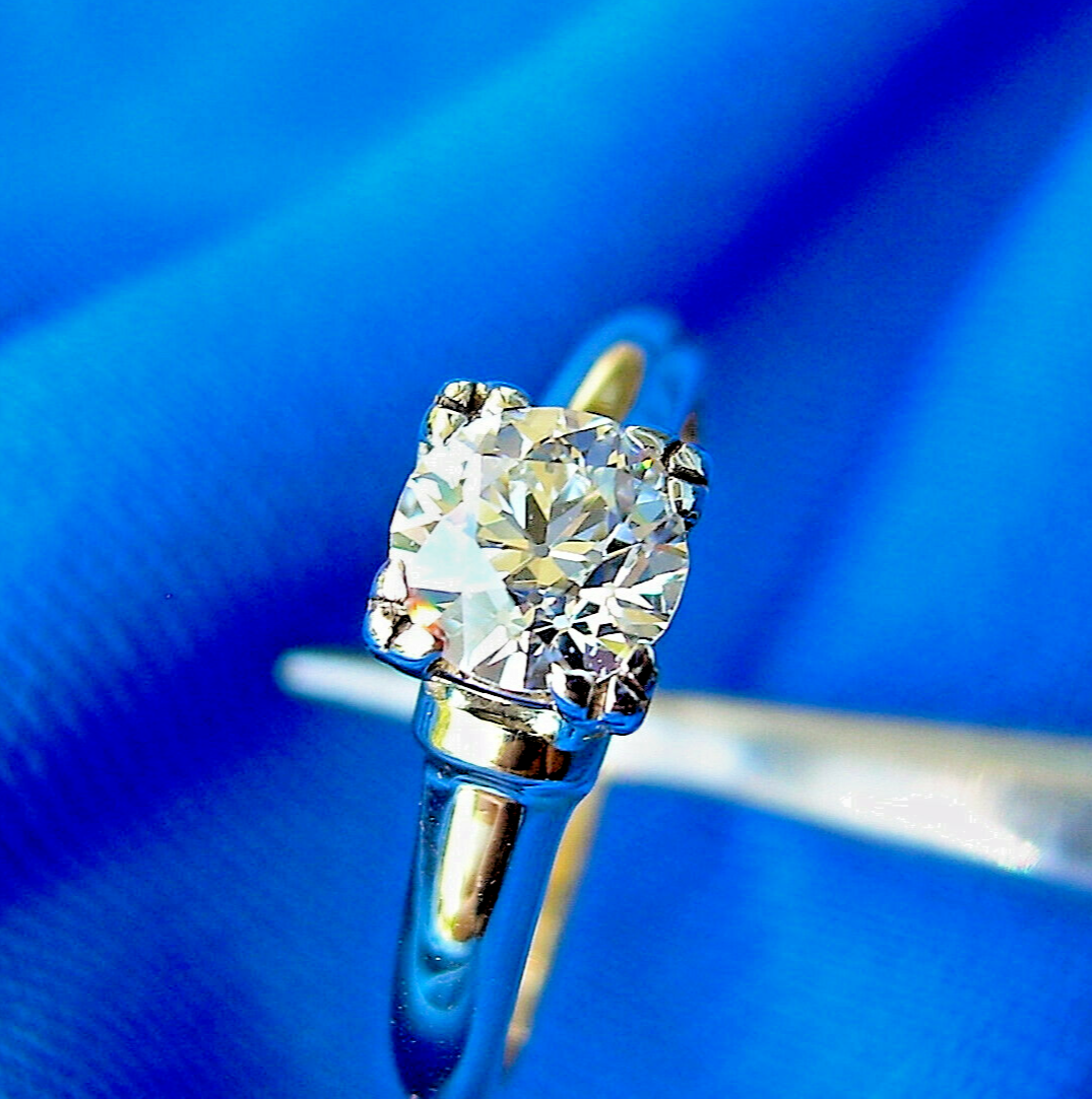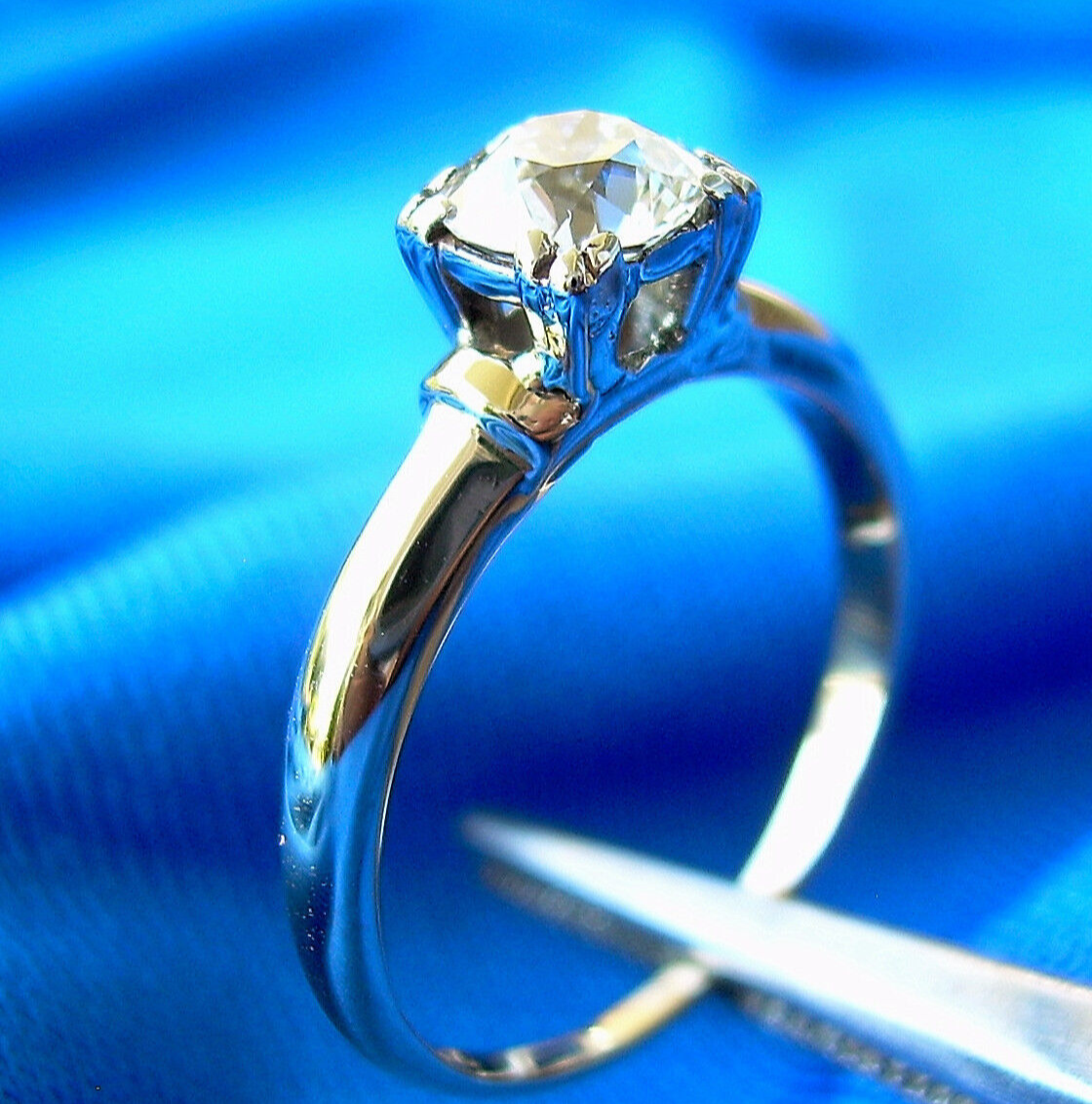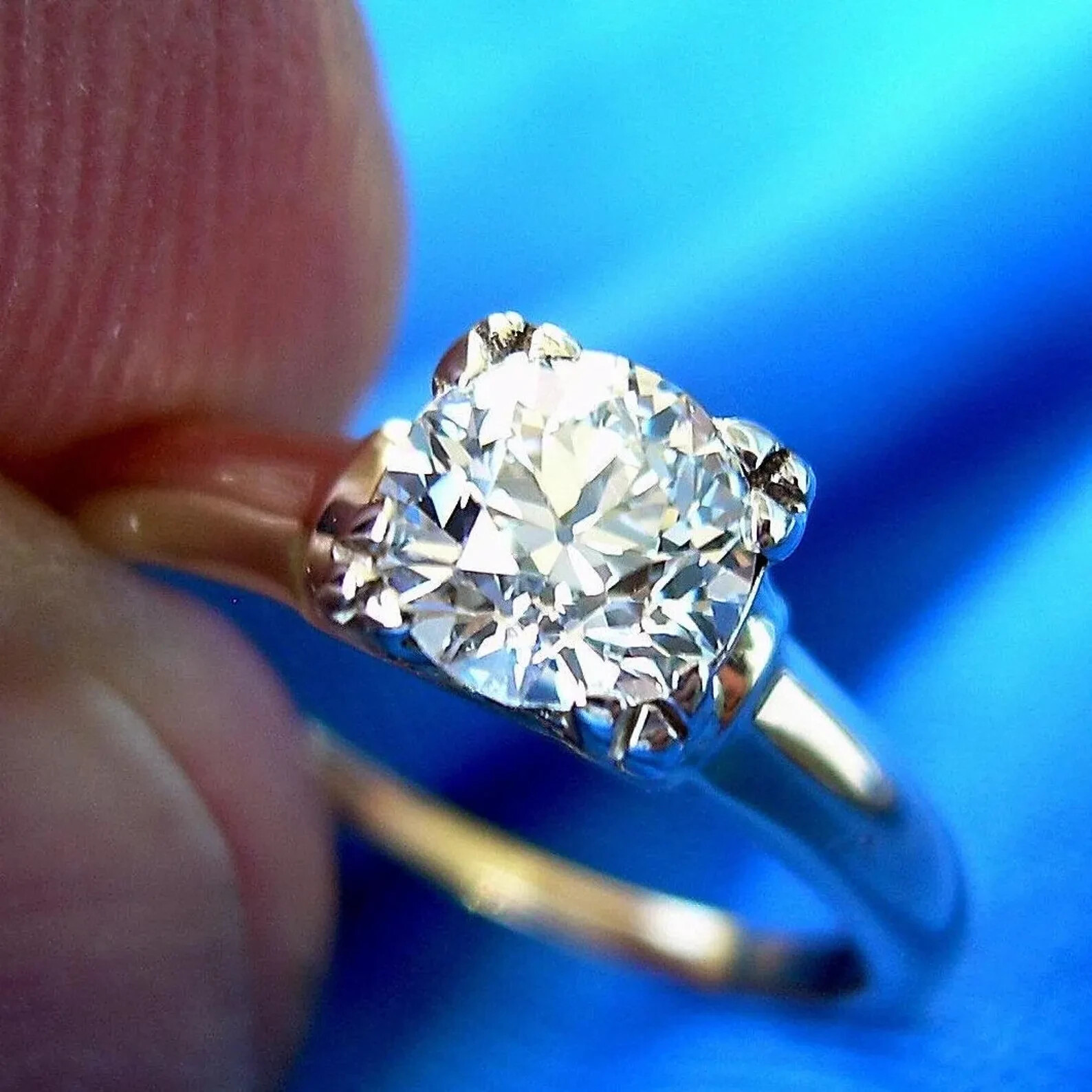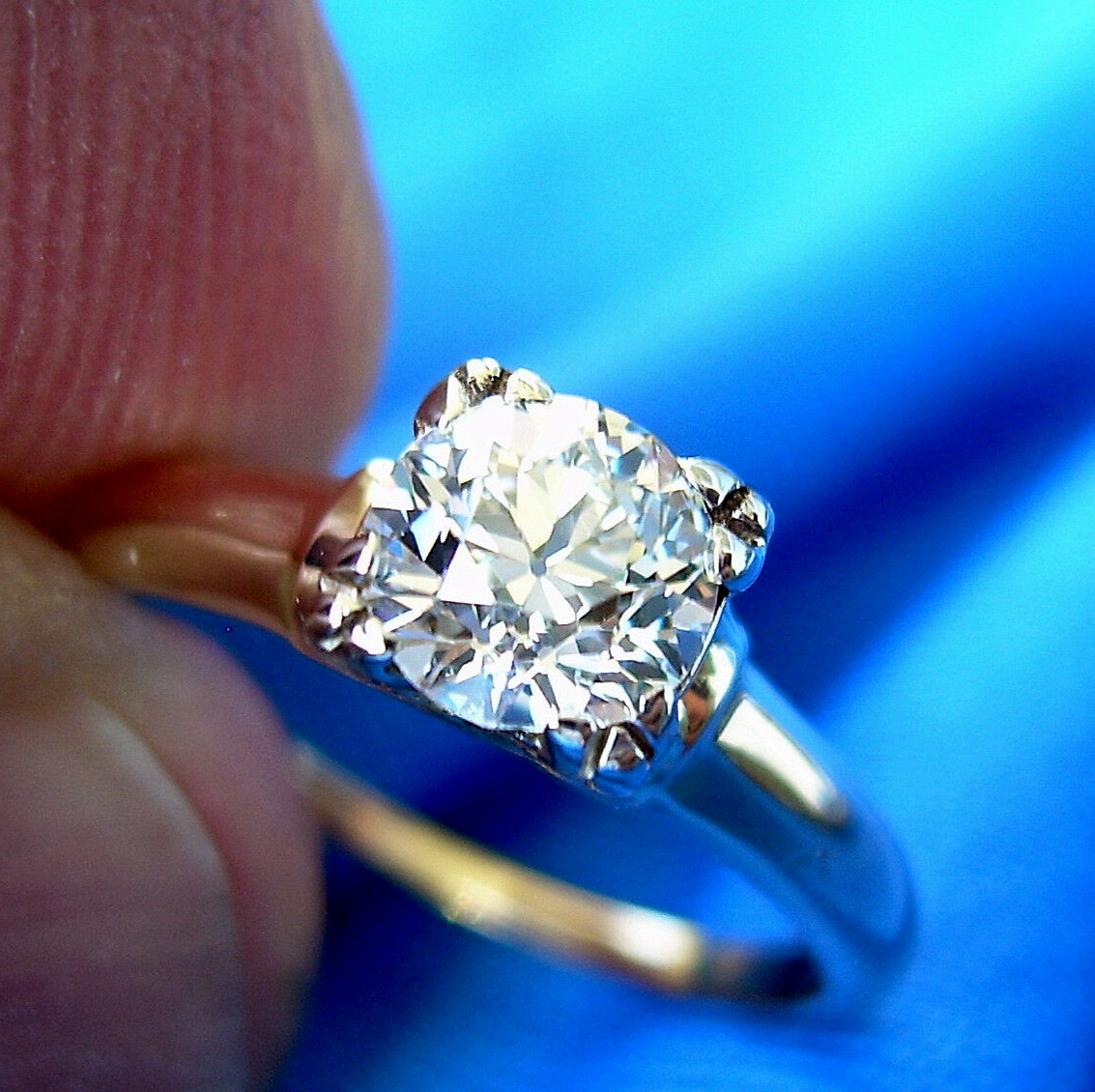 - Earth mined Diamond European cut Deco Engagement Ring Vintage Cushion Solitaire