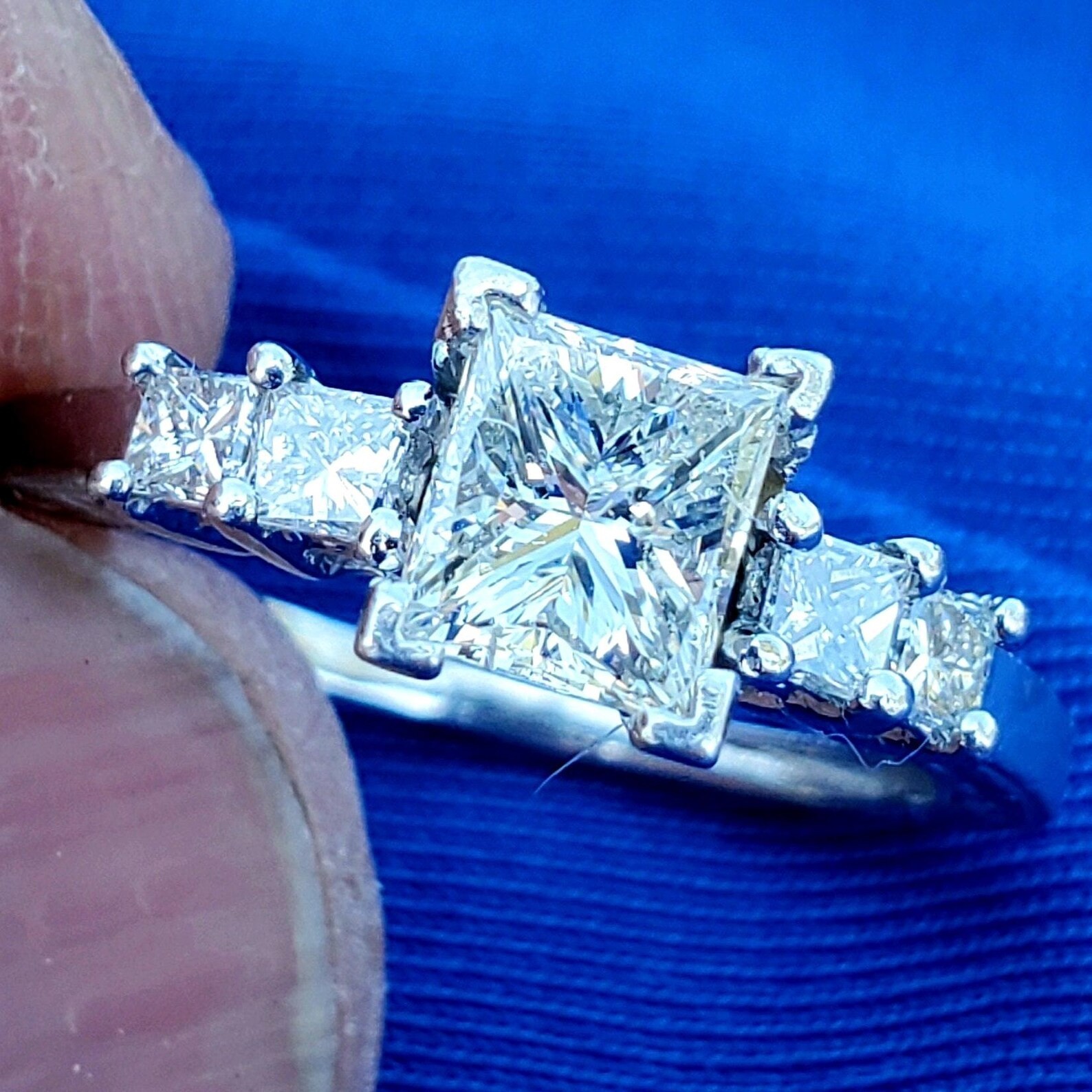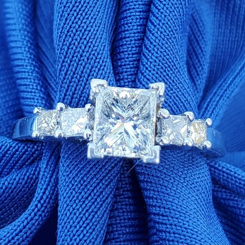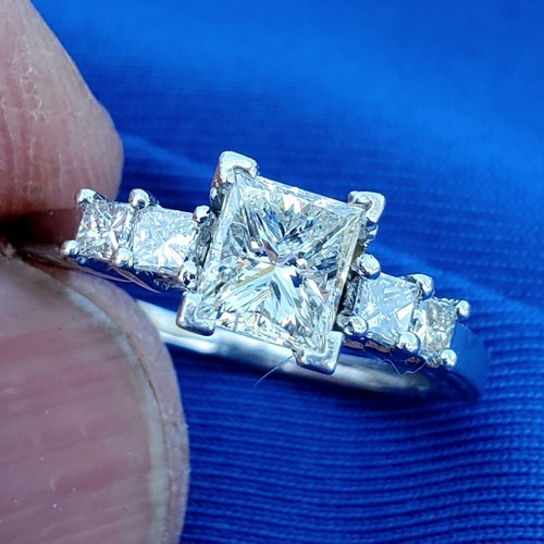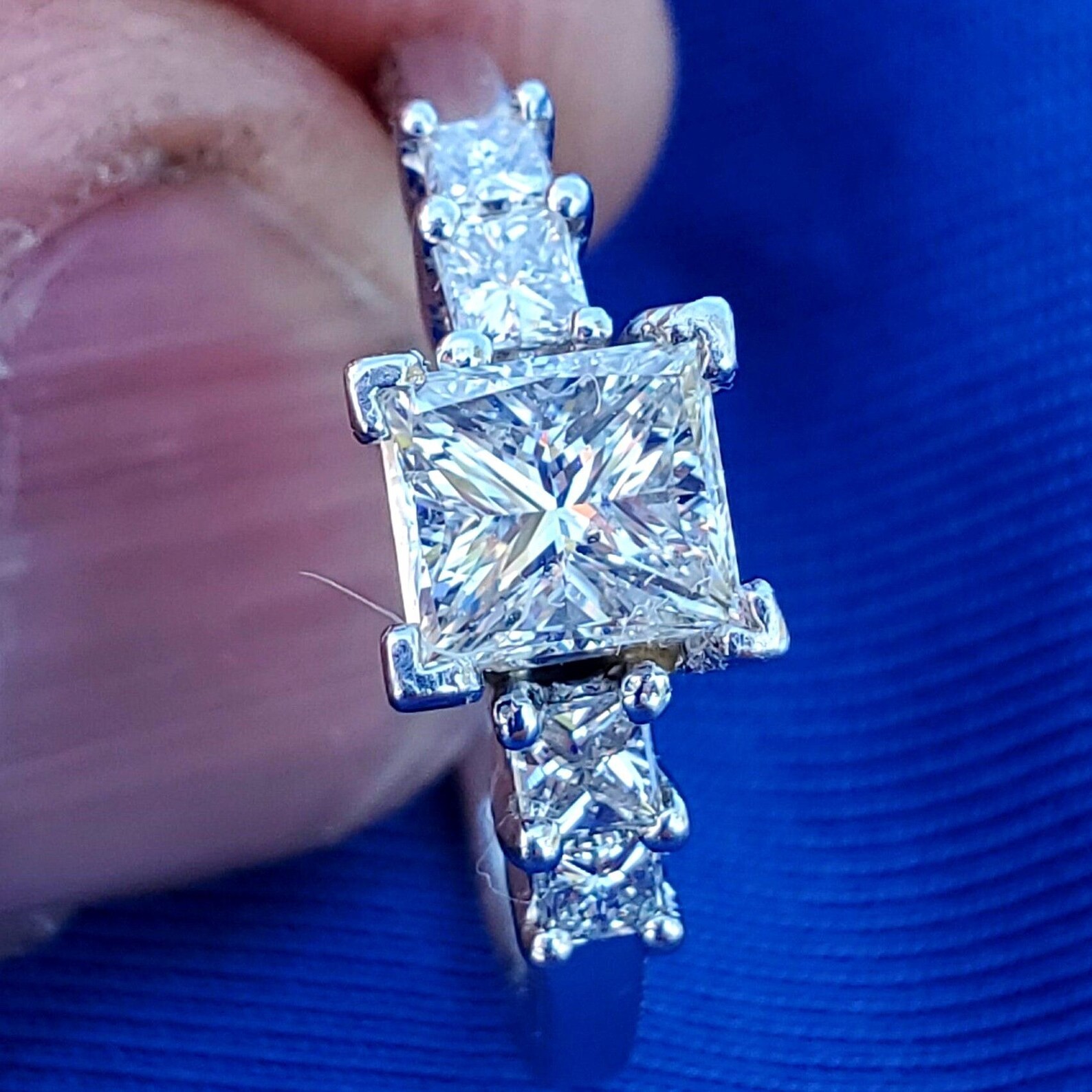 - Earth mined Diamond Princess Engagement Ring 1carat Platinum Hand made Solitaire