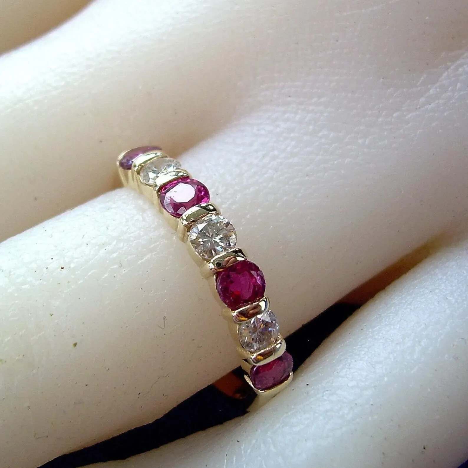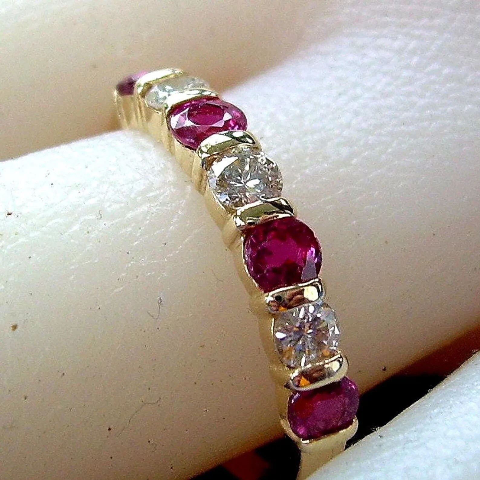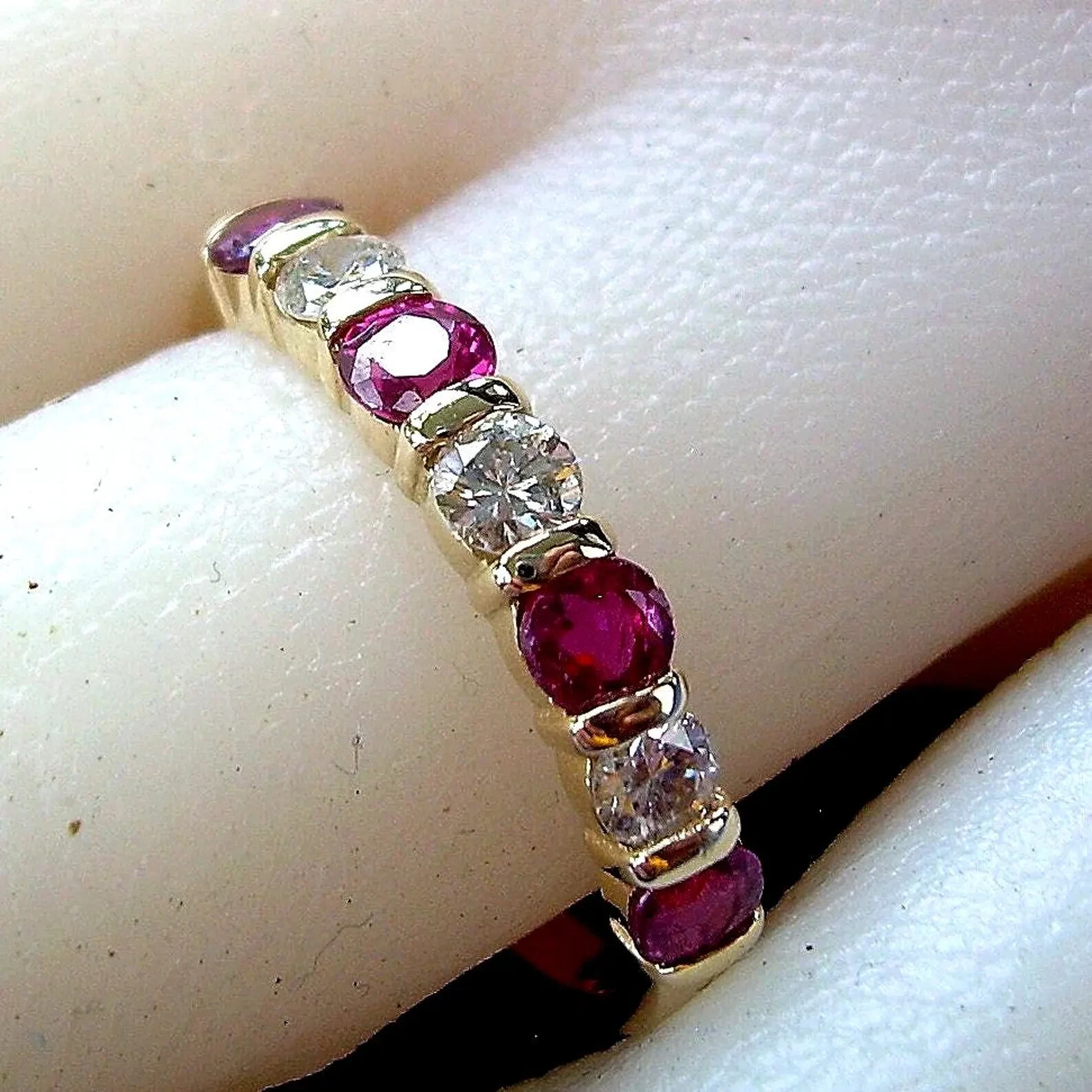 EARTH-MINED NATURAL DIAMOND RUBY 14K GOLD WEDDING BAND.