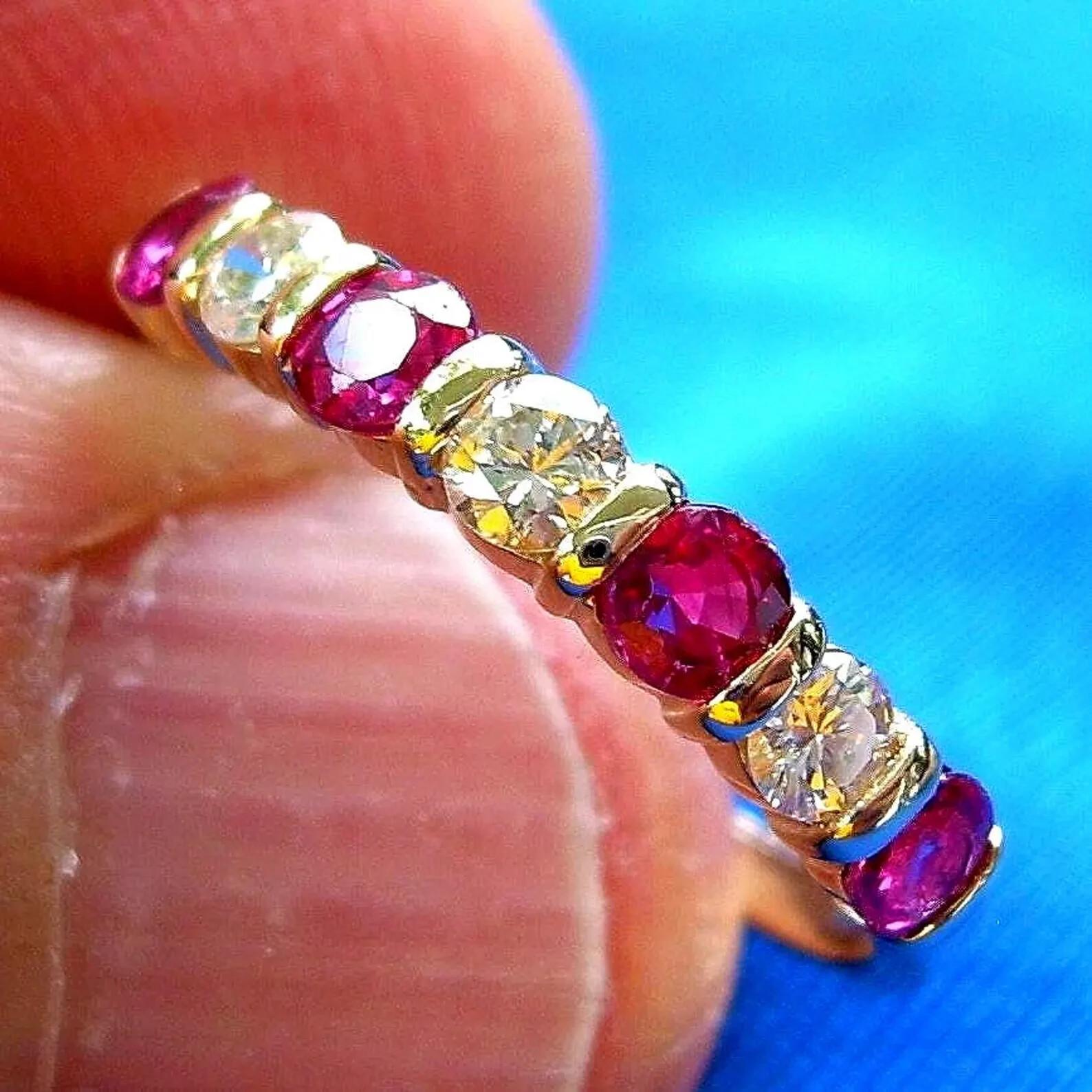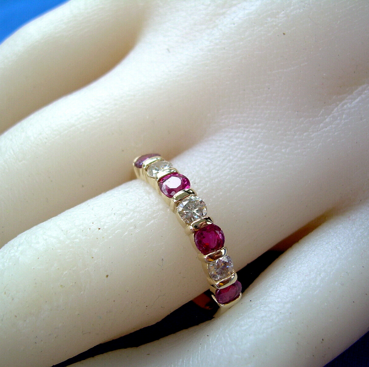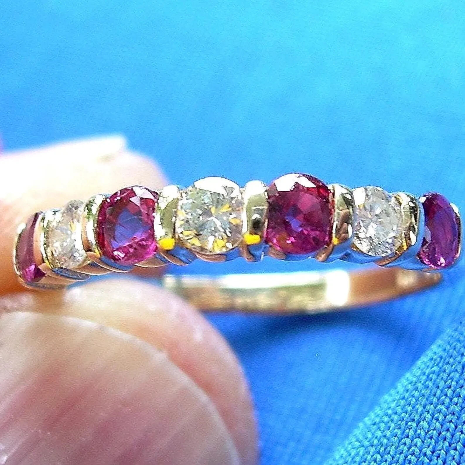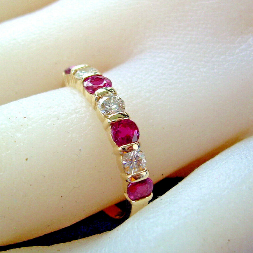 EARTH-MINED NATURAL DIAMOND RUBY 14K GOLD WEDDING BAND.