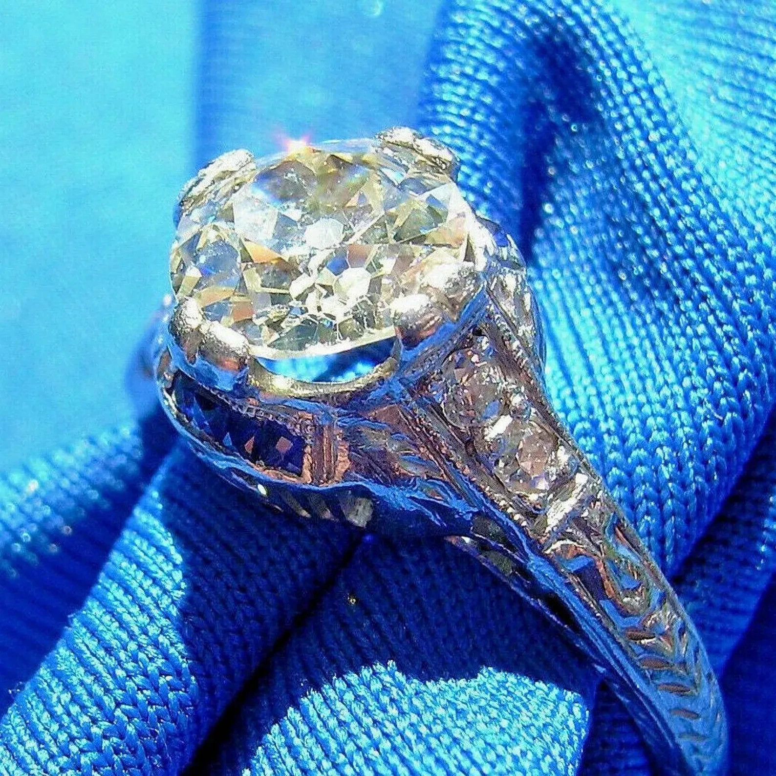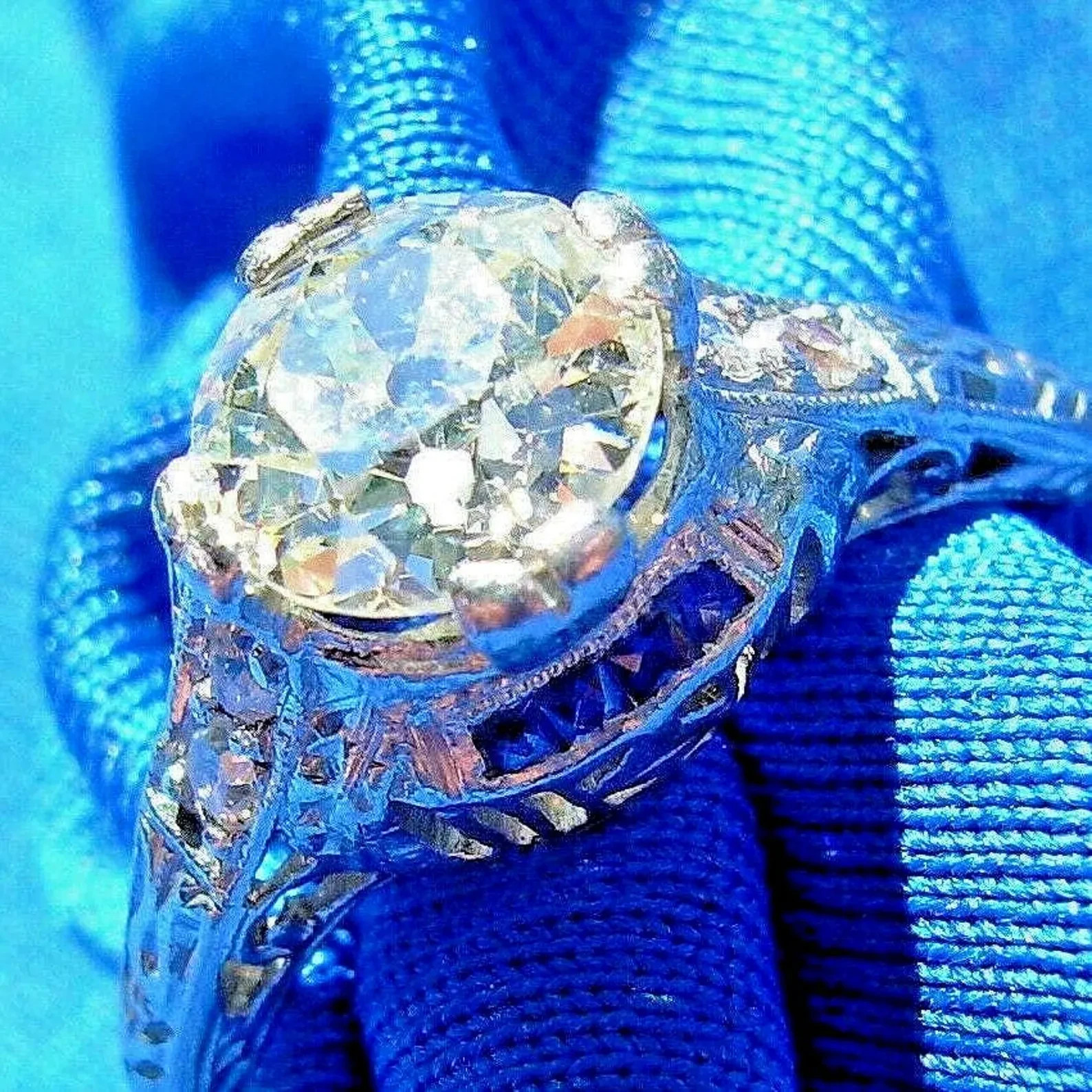 NATURAL EARTH-MINED DIAMOND PLATINUM DECO ENGAGEMENT STATEMENT RING.