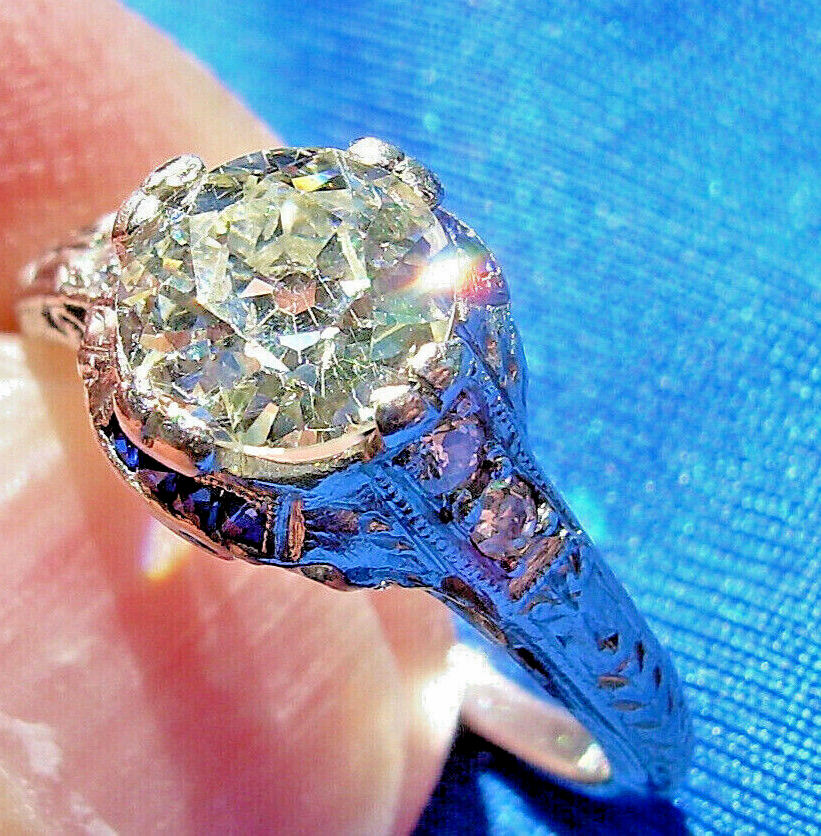 SPECIAL ANTIQUE DIAMOND SAPPHIRE GATSBY STYLE SOLITAIRE.