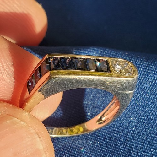 Stunning square french cut sapphires set in solid 14 karat white gold.