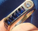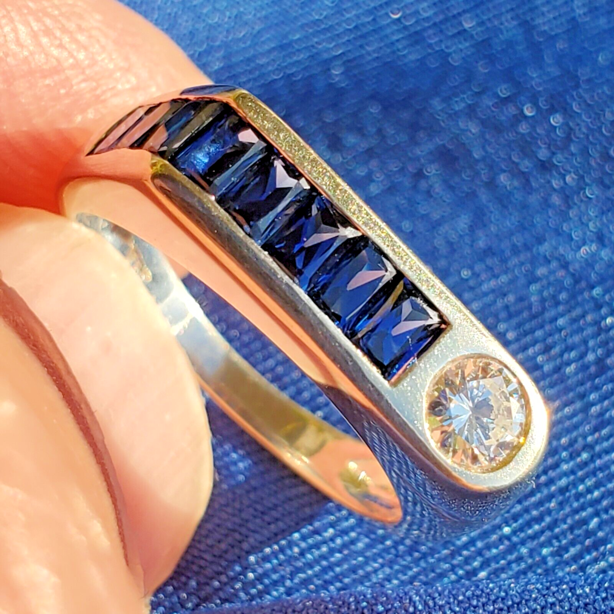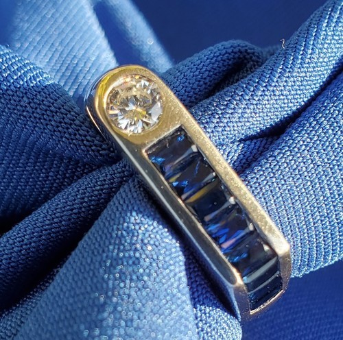 Art deco style geometric sapphire diamond band ring.