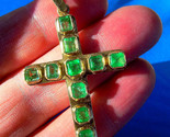- Earth mined Emerald Deco Cross Pendant Elegant Solid 18k Gold Medallion Gift