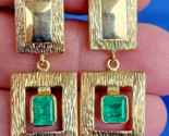 - Earth mined Emerald Deco Design Earrings Elegant Vintage Style Dangles 14k Gold