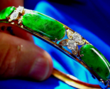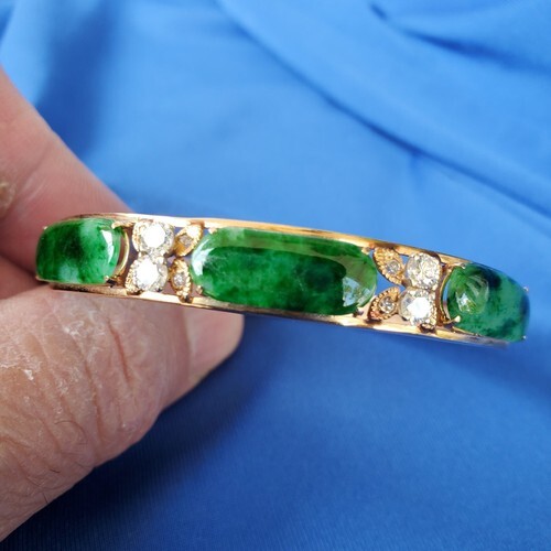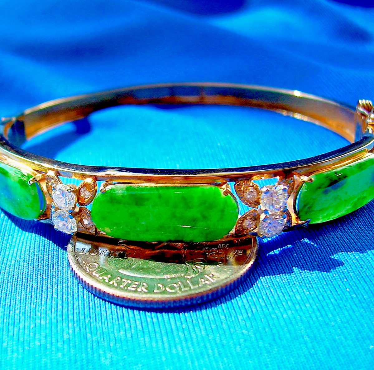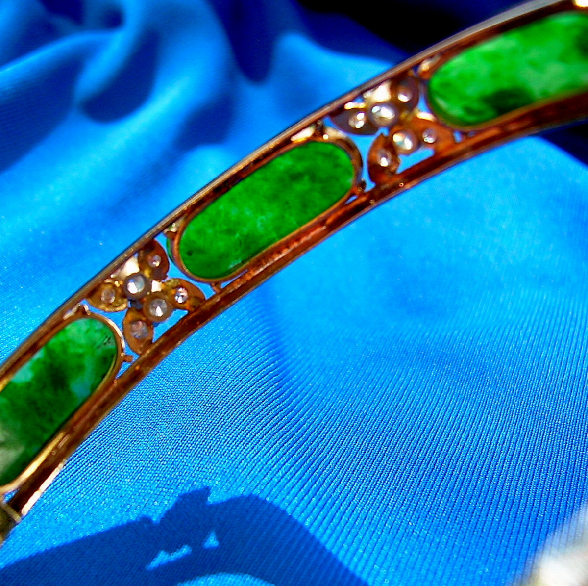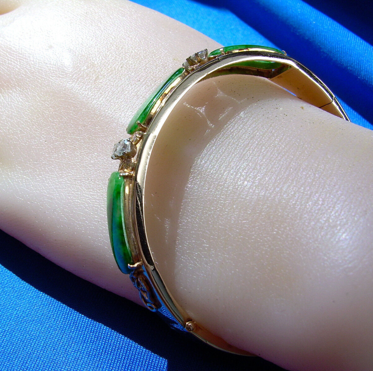 - Earth mined Imperial Jadeite Jade Diamond Antique Deco Bangle Bracelet 18k Gold