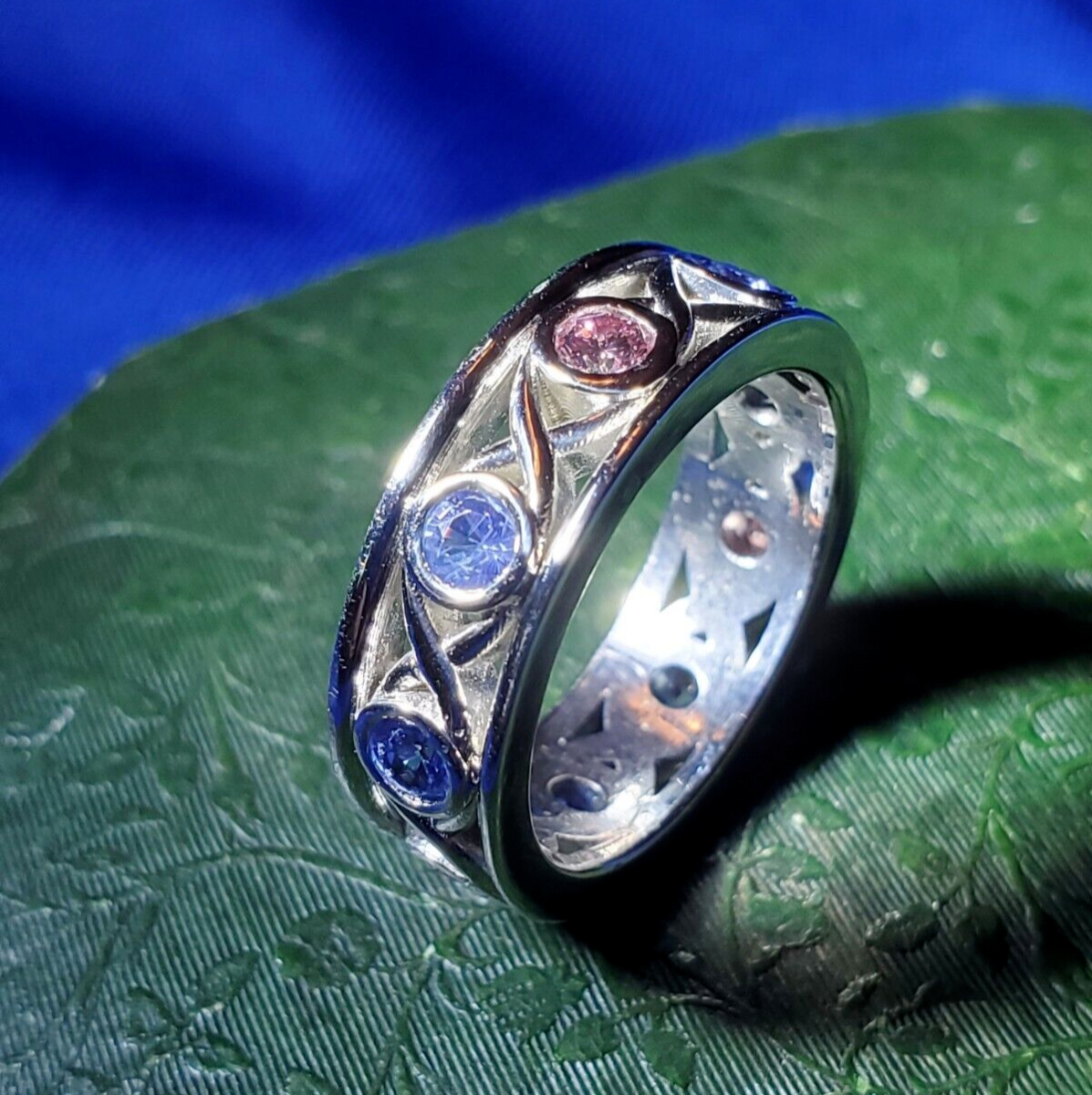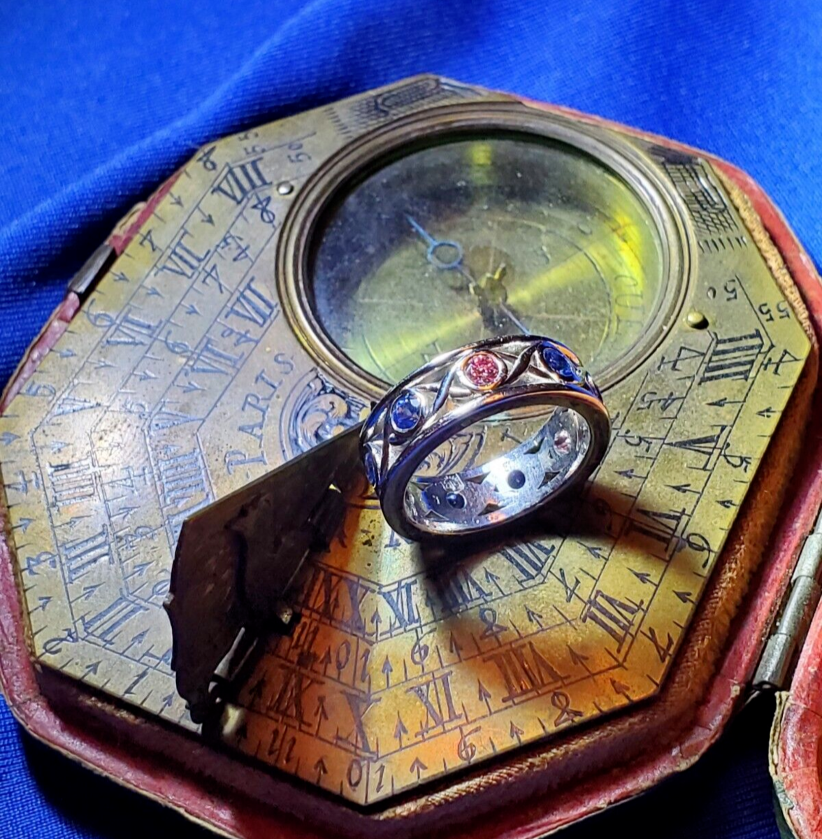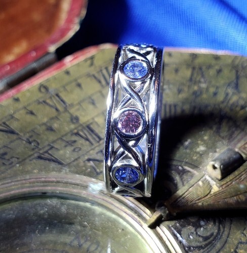 - Earth mined Natural Color Pink Diamond Sapphire Band Deco Platinum Etenity Ring